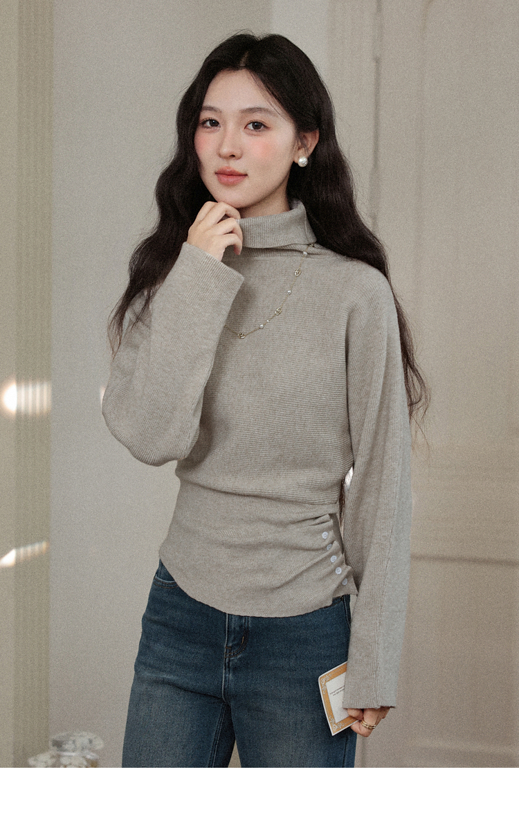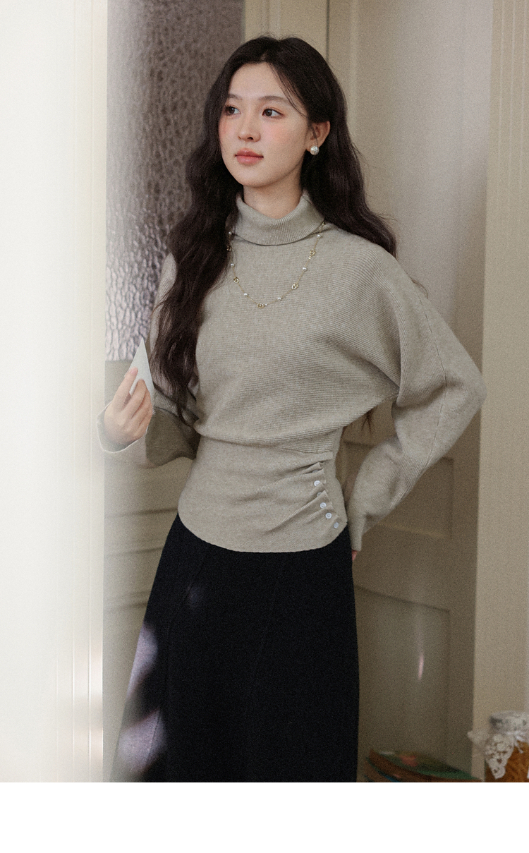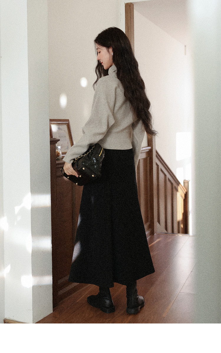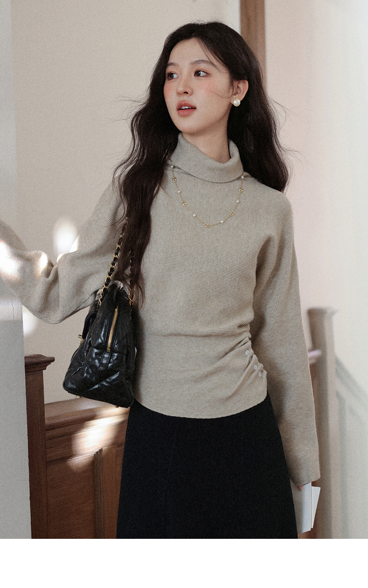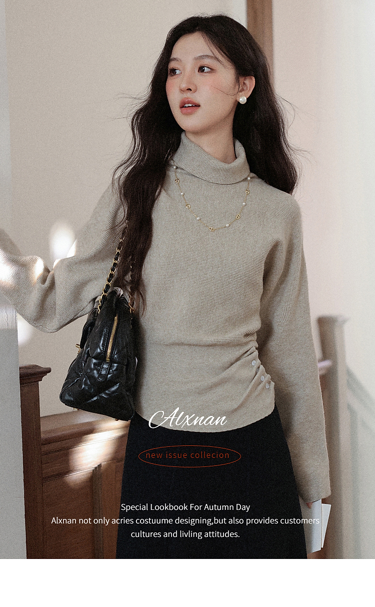 鹿向南「驼调沁雅」燕麦色针织毛衣秋季新款翻领掐腰女款长袖上衣