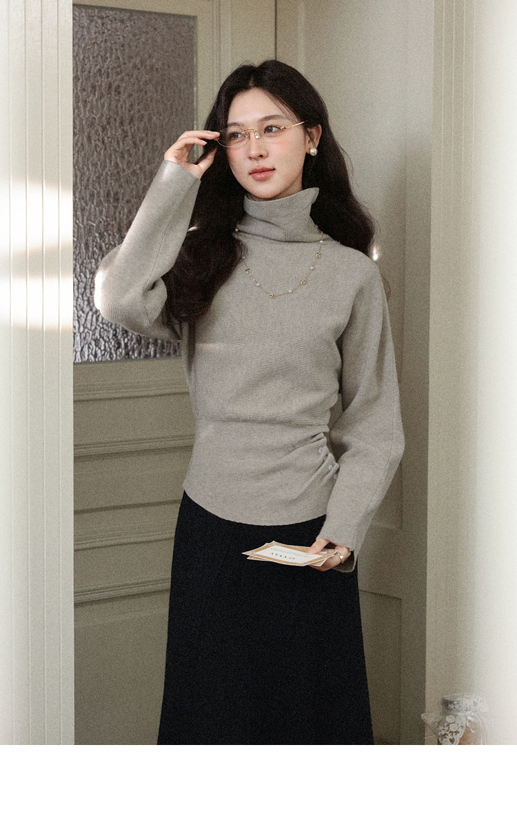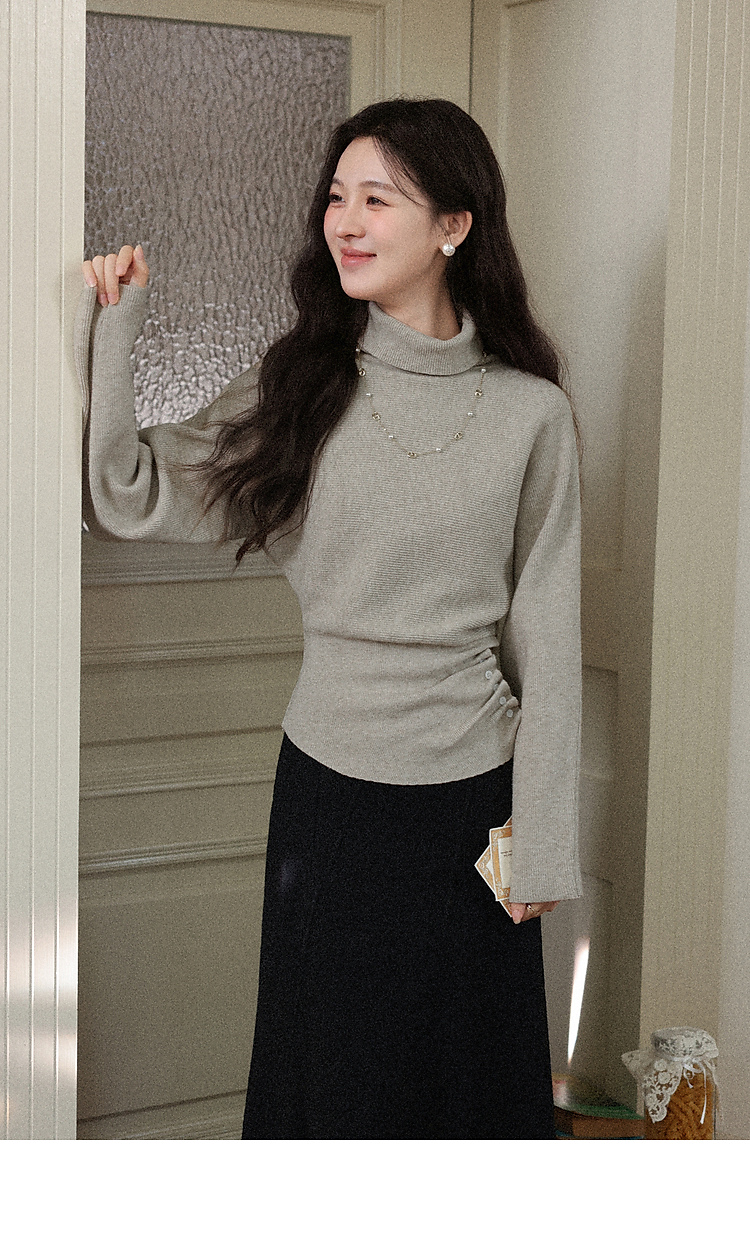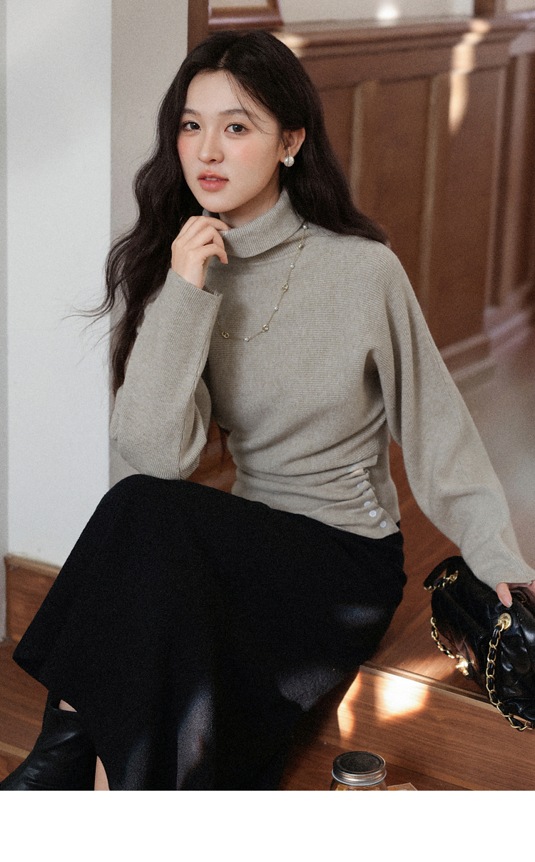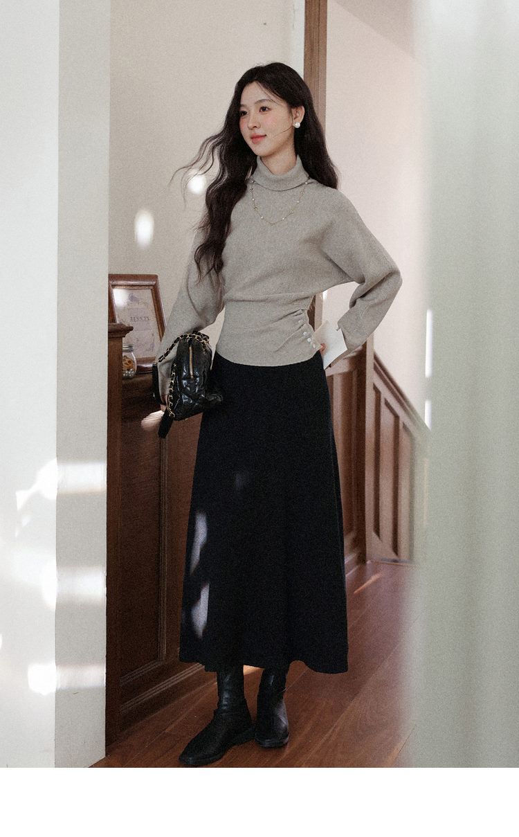 鹿向南「驼调沁雅」燕麦色针织毛衣秋季新款翻领掐腰女款长袖上衣