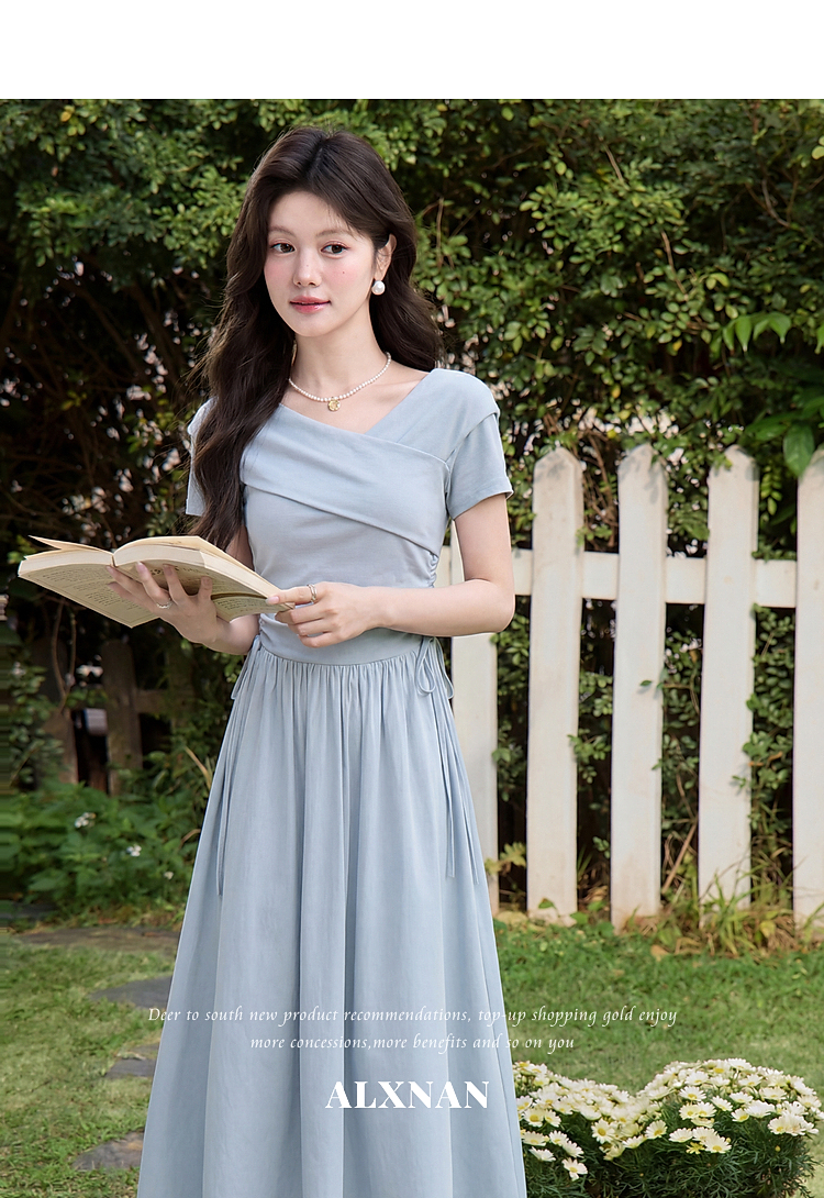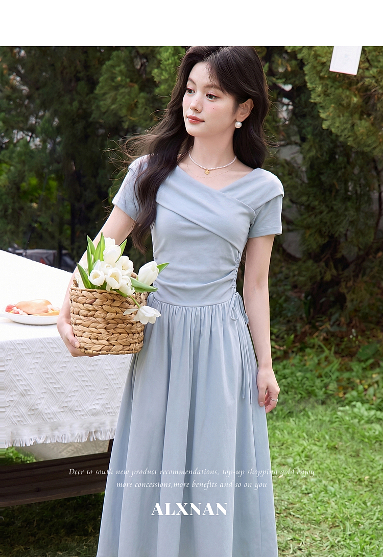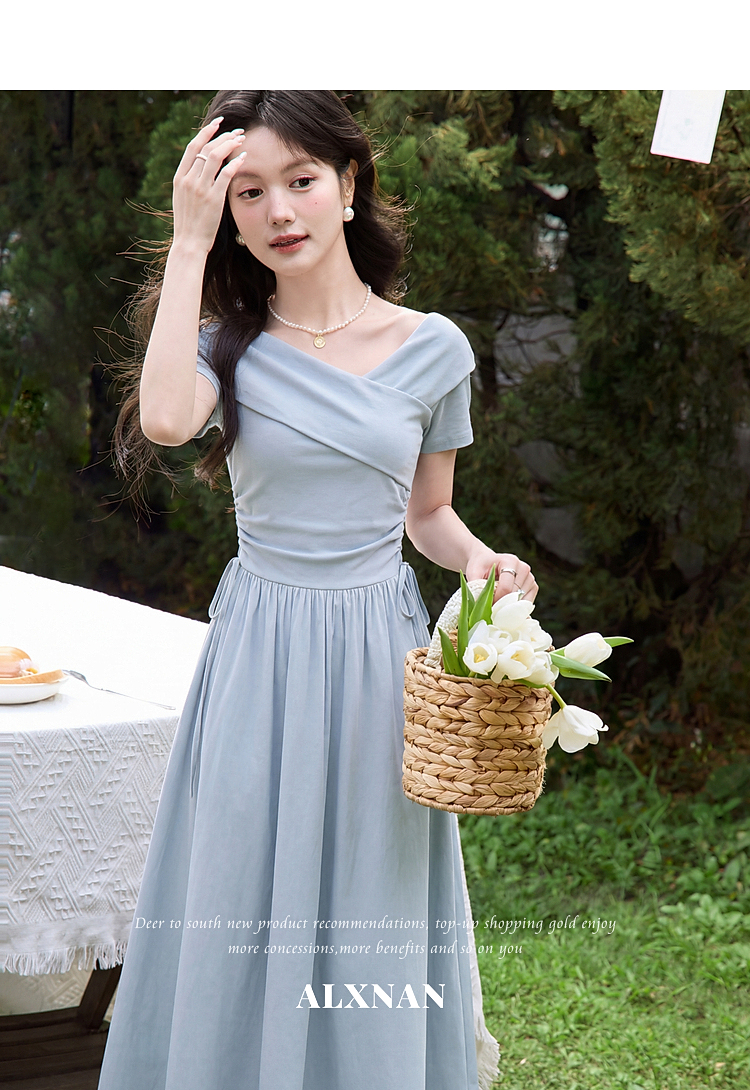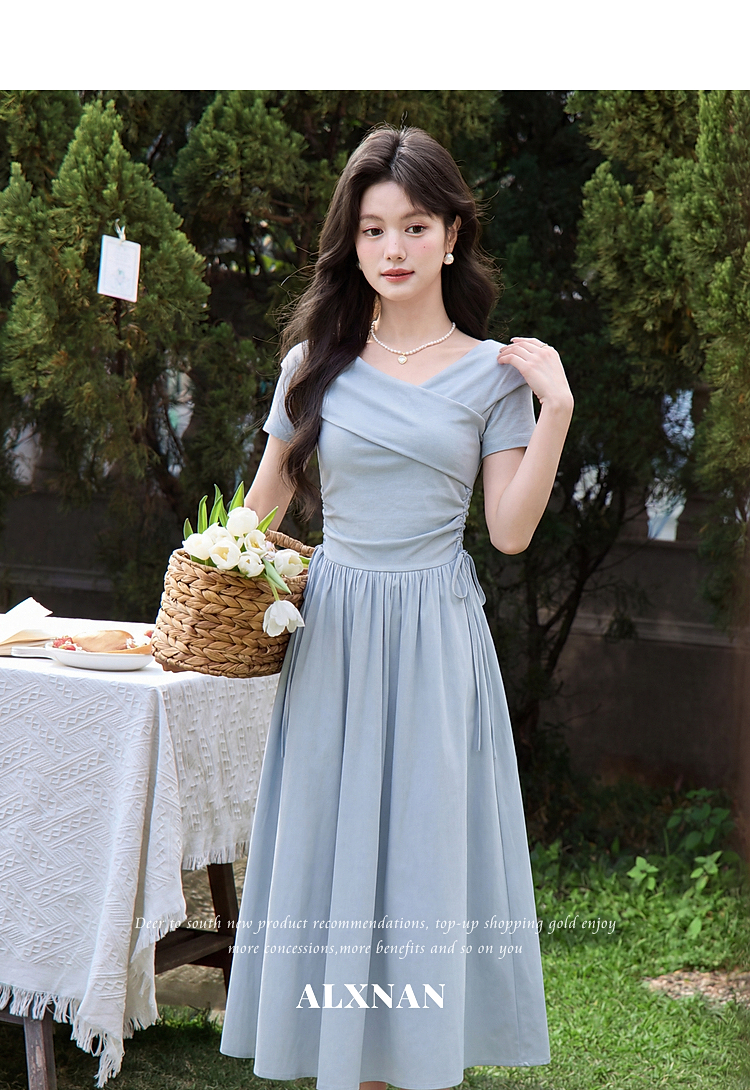 鹿向南【0417/20:00新品前1小时5折限量100件】气质浅蓝色连衣裙