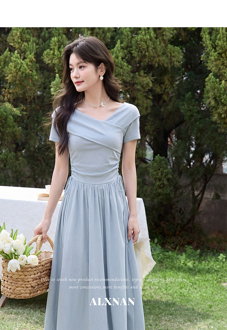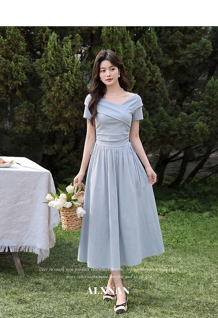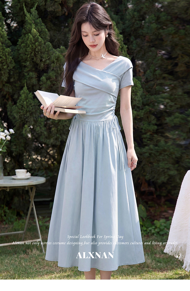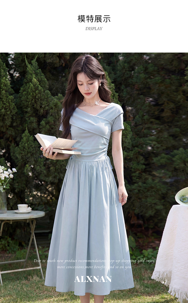 鹿向南【0417/20:00新品前1小时5折限量100件】气质浅蓝色连衣裙