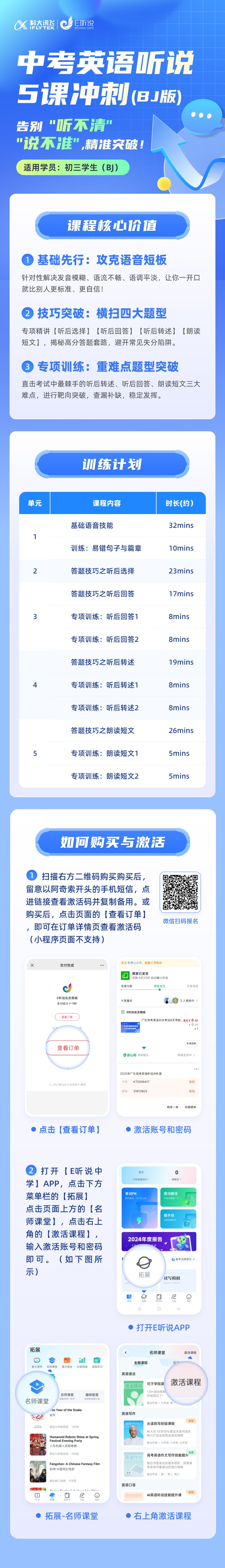 2、打开App【E听说中学】,点击菜单栏【拓展】-【名师课堂】,点击右上角【激活课程】,输入激活码;