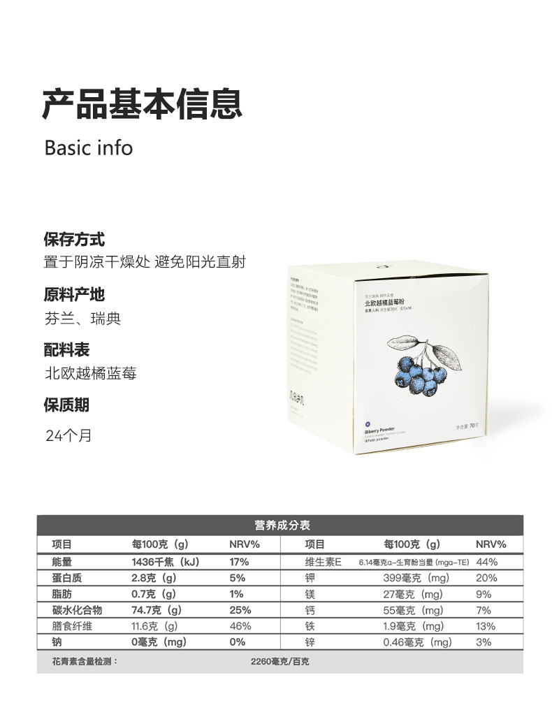 【恒温萃取】北欧 越橘蓝莓粉 5g*14袋*1盒 清洁加工自然配比