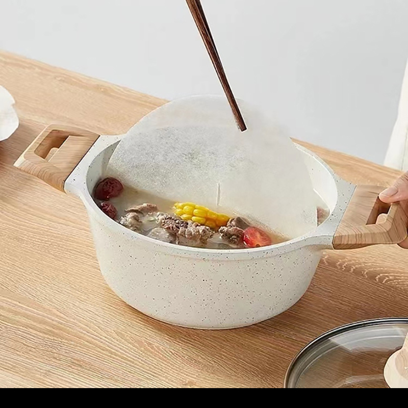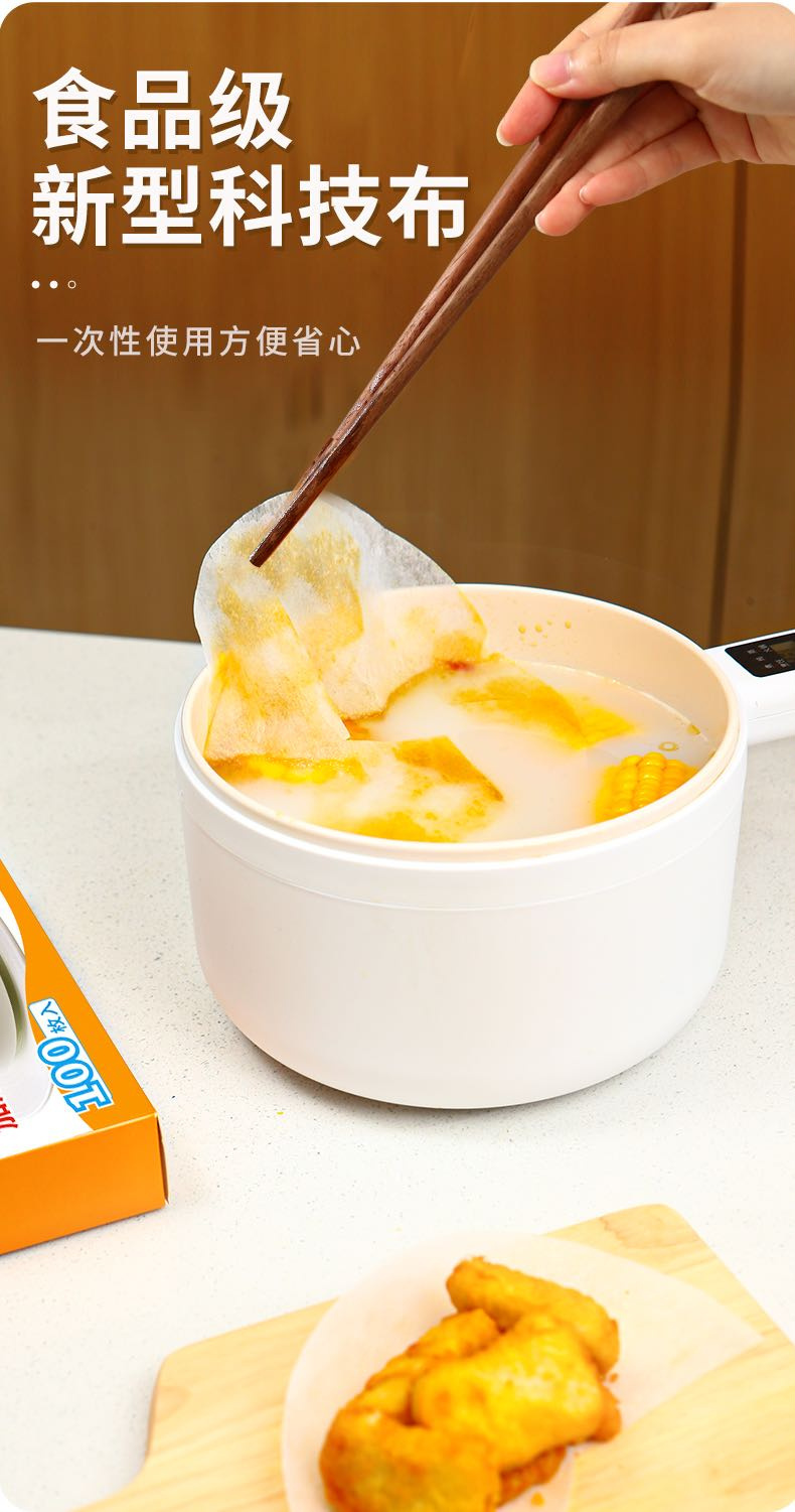 耐温120°C 食品接触级无纺布🌟 单张18CM直径 适配各种锅碗 一铺一捞,轻松吸附漂浮在表层的油水方便高效快捷 从细节提高生活精致感 而且吸油不吸汤,靓汤更爽口