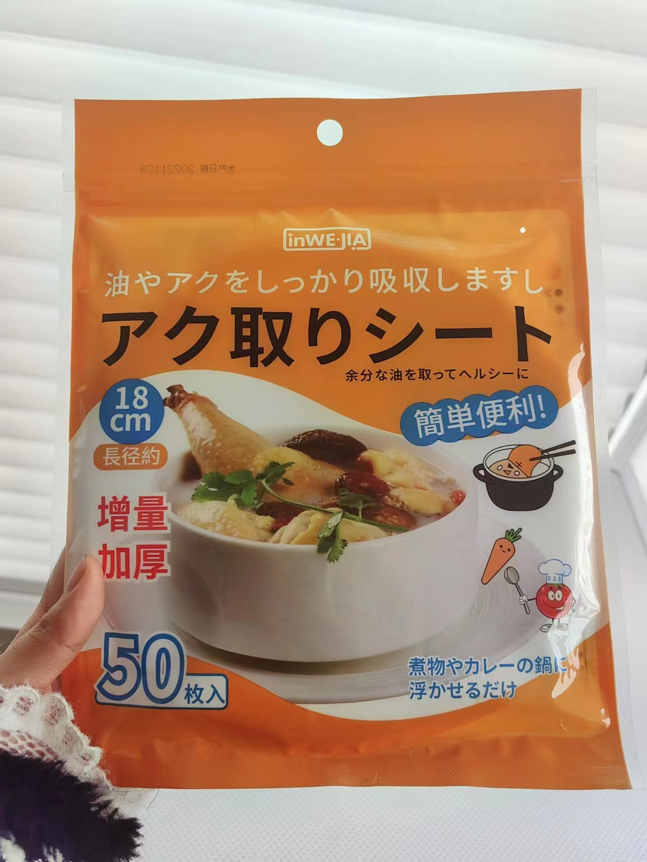 一个正规的吸油纸应该是管用又安全 你是不是经常看着外卖里油光发亮,却格外诱人的饭菜纠结 很美味的同时一顿下去一天的油摄入量可能都会超标 特别是像麻辣烫,酸辣粉,炸鸡炸串这类热量高油脂多的食物 【inwejia吸油纸】吸走饭菜多余的油脂,告别油腻,健康又养生