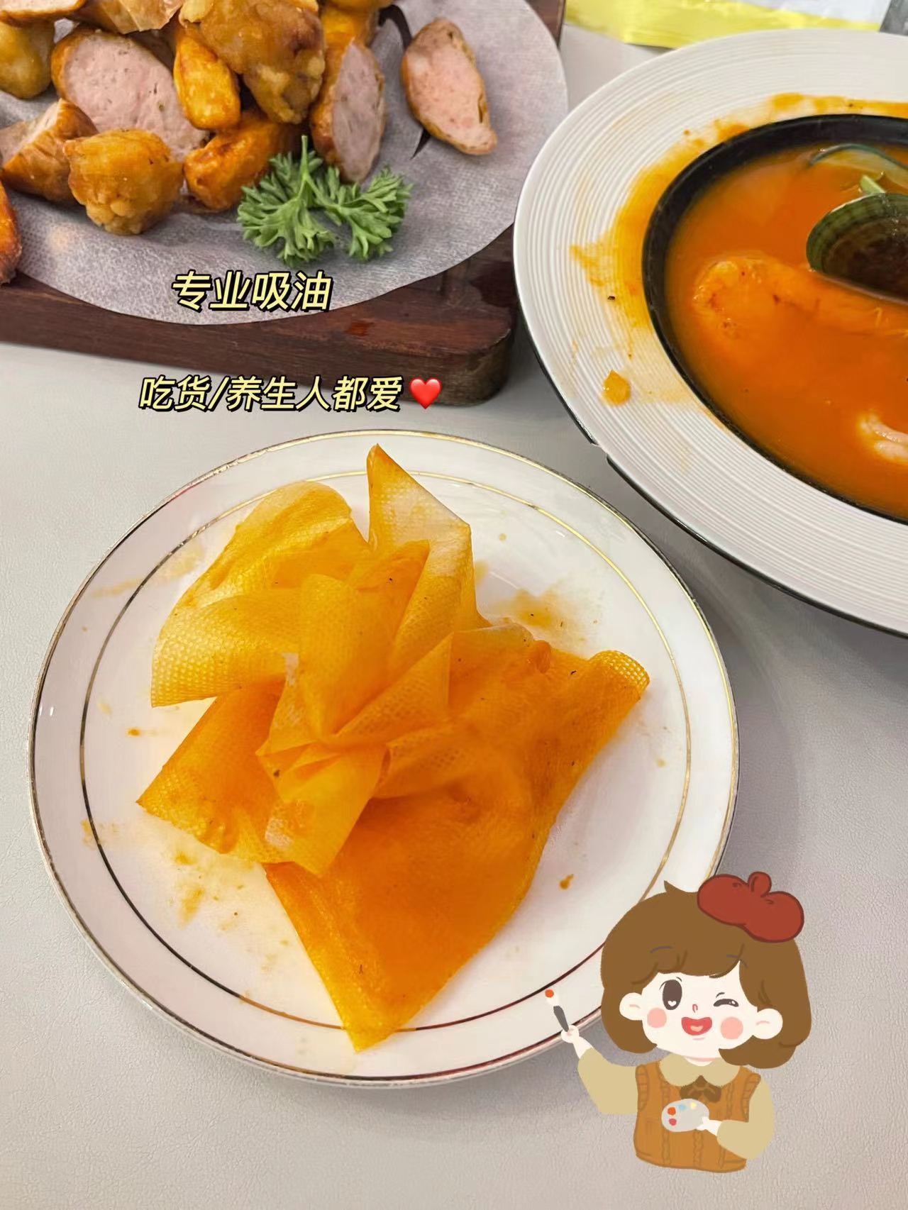 吸油不吸味 无油放心吃 泡面、火锅、炖煮食材轻松除浮油 吃货少油敞开吃美食🎀 老人小孩健康吃美食🎀 控油塑形安心吃美食🎀 轻松滤油,专为吃货设计的吸油纸 油炸爱好者的神器 炸鸡、烧烤、薯条,从此想吃就吃!
