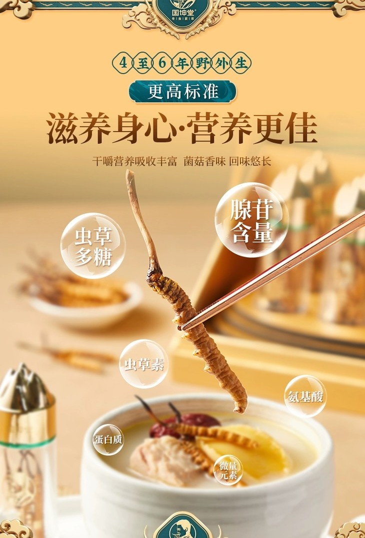 条数越少,单根虫草越重、外观越饱满,成分也更集中。