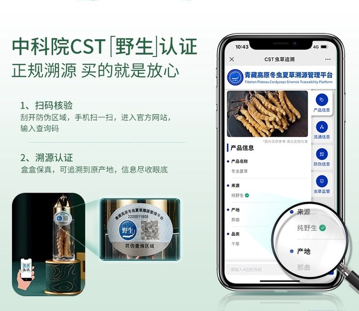 ②其次通过"野生虫草溯源码"扫码查看是低海拔野生虫草还是高海拔野生虫草。