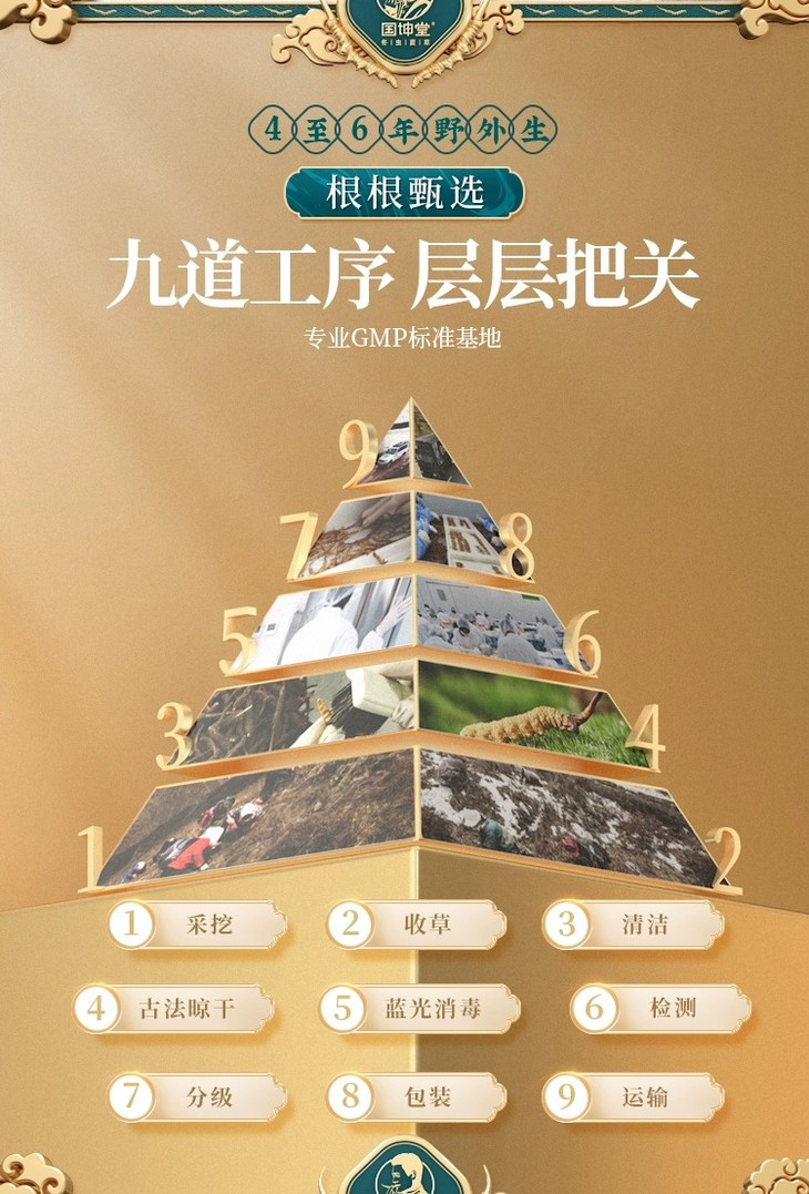4、手工刷净,古法晾干,蓝光消毒,严格质检筛选,独立锁鲜包装,坚持野生虫草本味,可以嚼着吃!