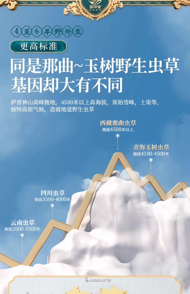 国坤堂因循自然,跨越山海,锁定西藏那曲萨普雪山、青海玉树三江源头,并在这两个野生冬虫夏草的核心产区,建立了原产地采集点和标准化工厂,形成了国坤堂冬虫夏草的核心品牌资产。