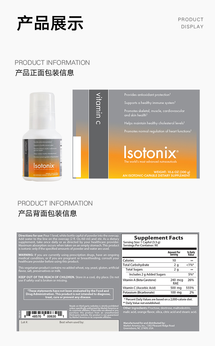 Isotonix 美安维生素C粉-美国直邮仓发货
