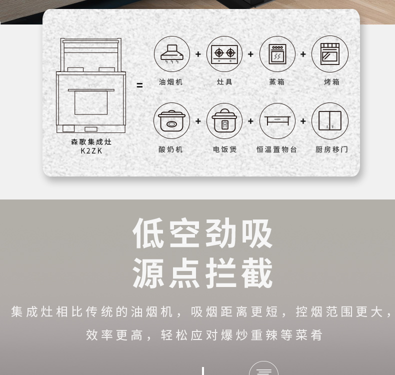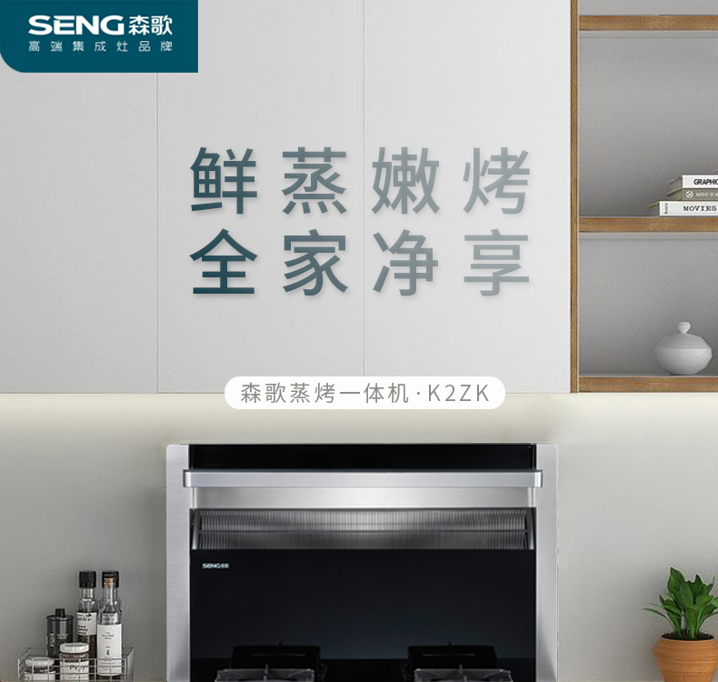 森歌 SENG JJZT-K2ZK蒸烤一体集成灶侧吸抽油烟机烟灶套装燃气灶钢化玻璃台面 天然气