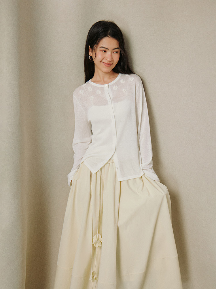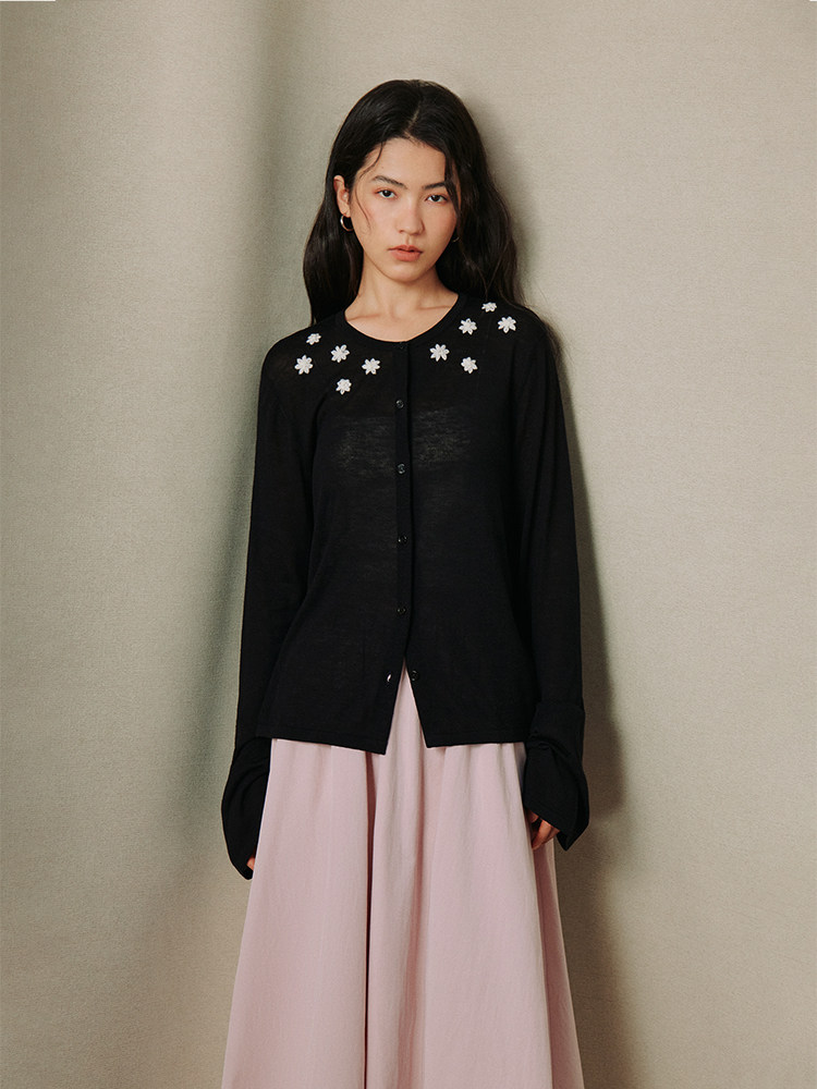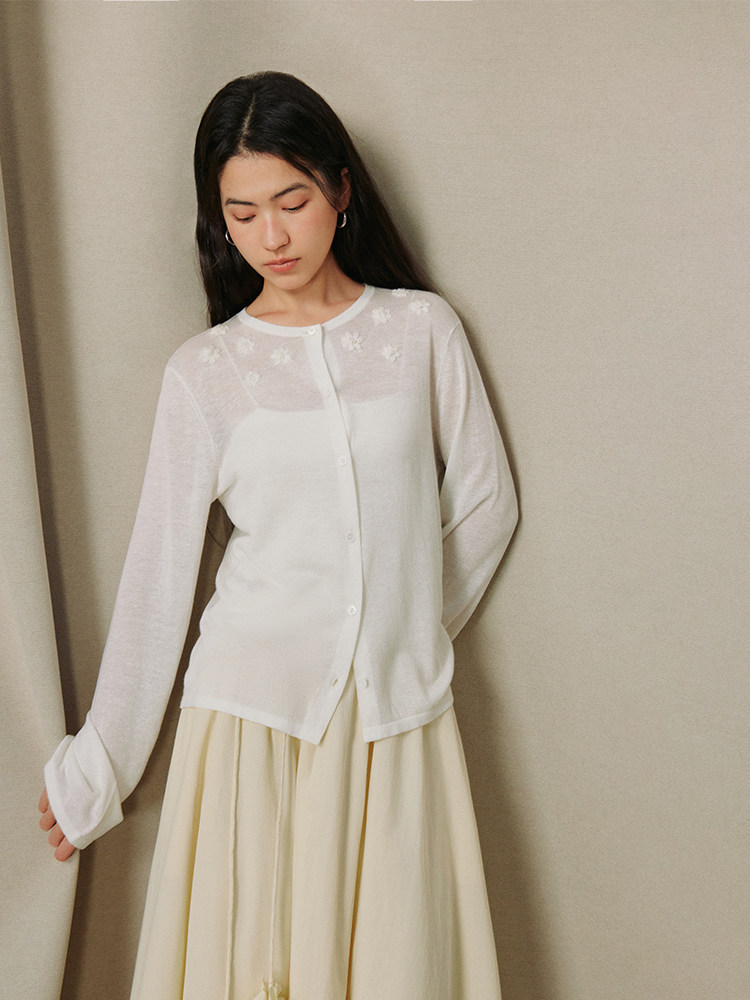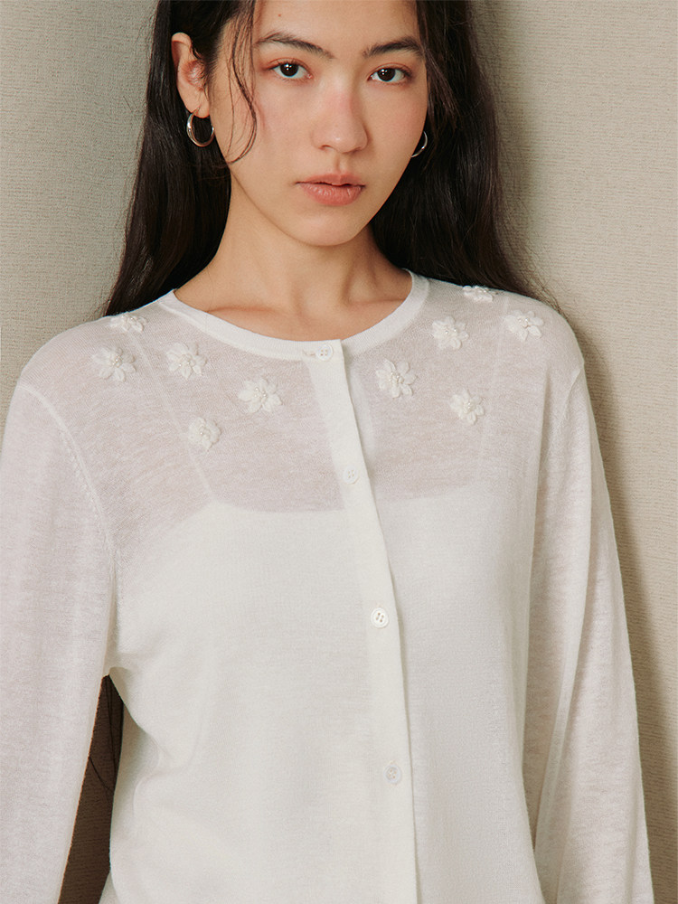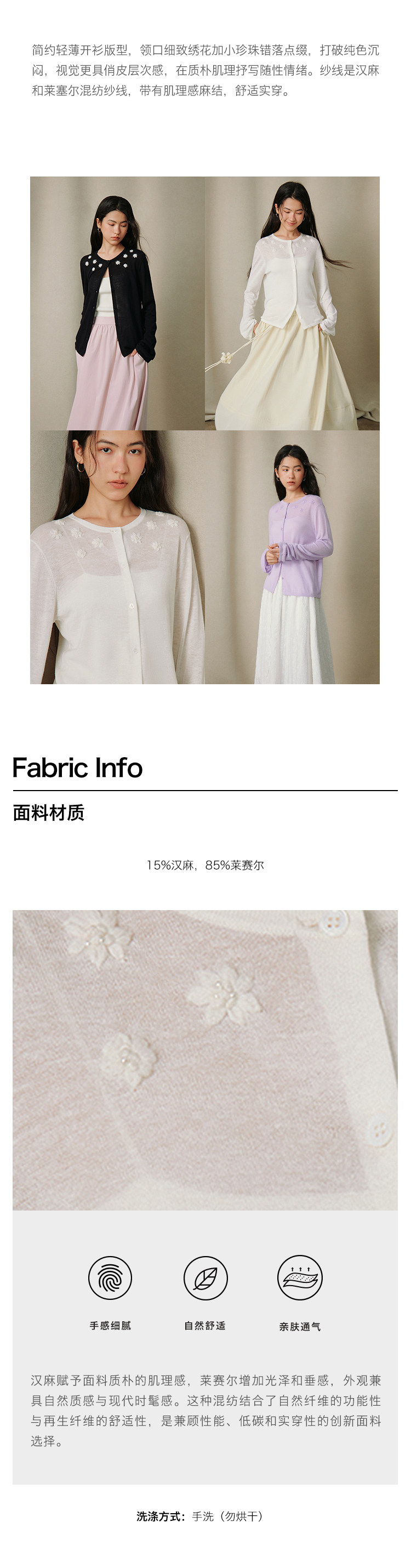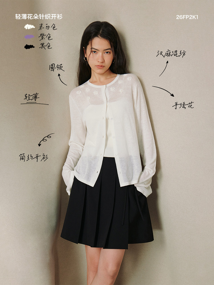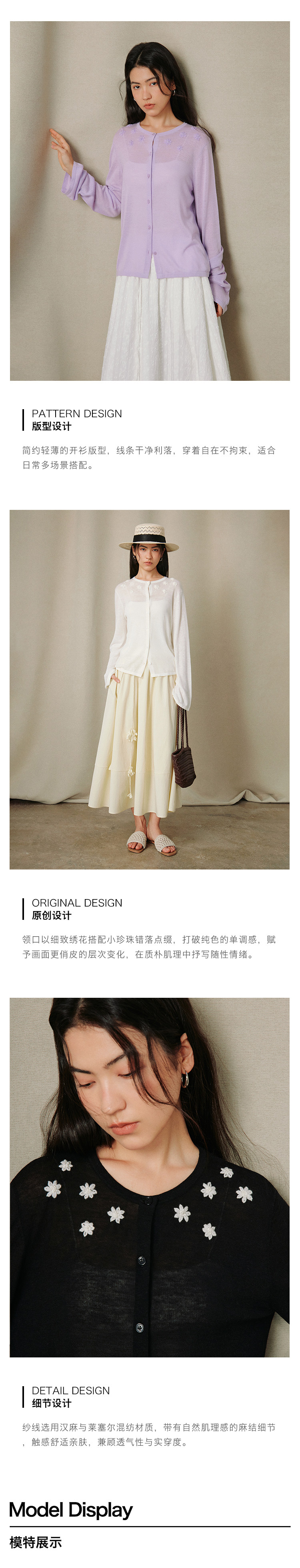 ForPoem 26/SS 原创设计汉麻莱赛尔轻薄花朵针织罩衫开衫