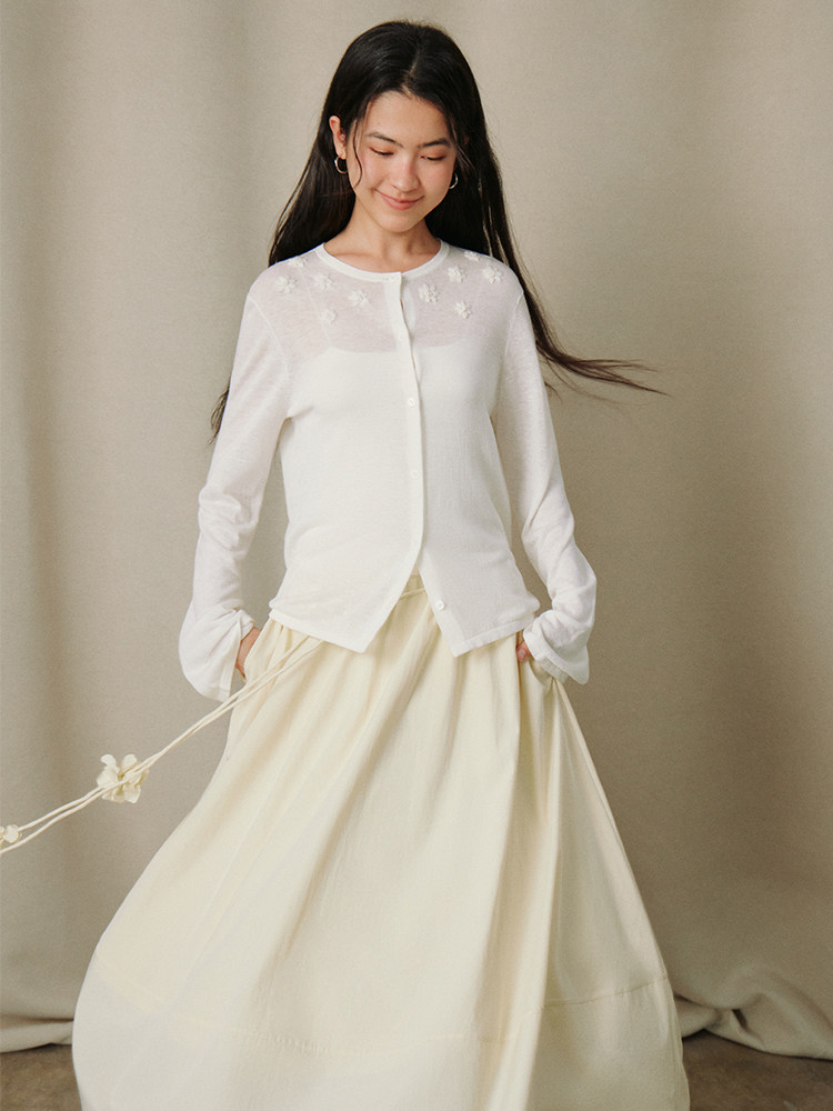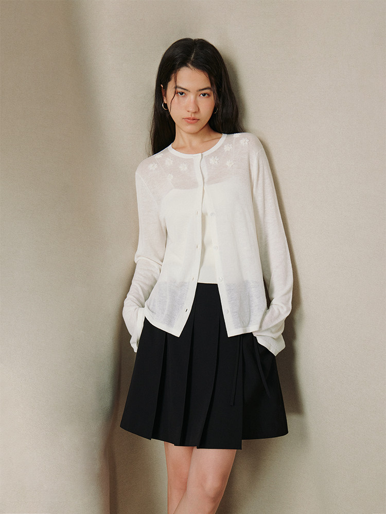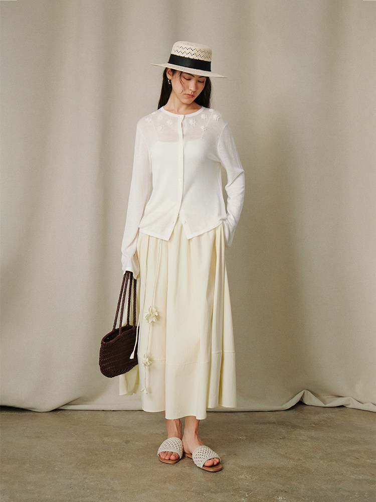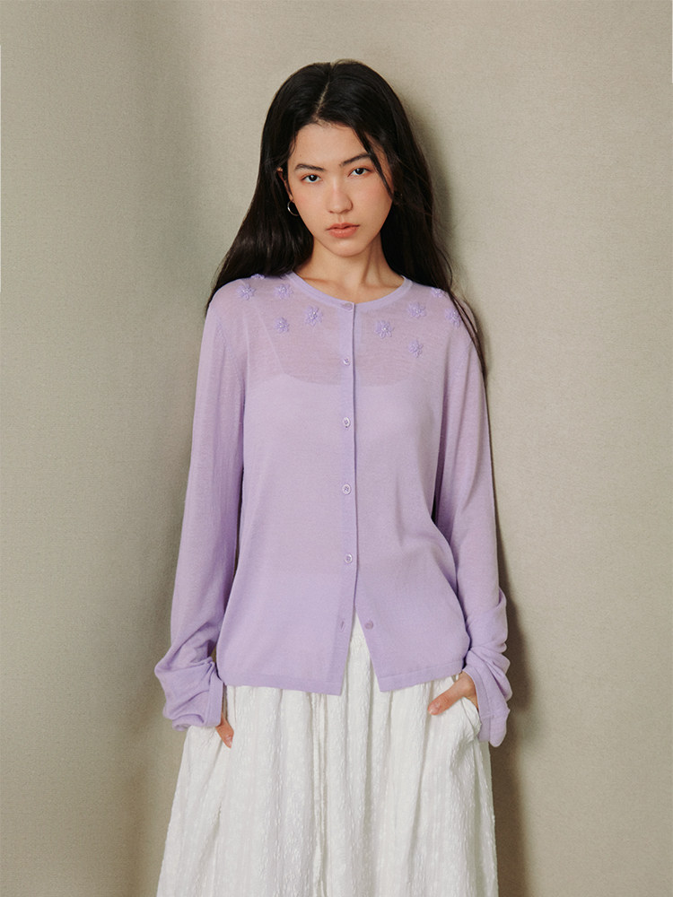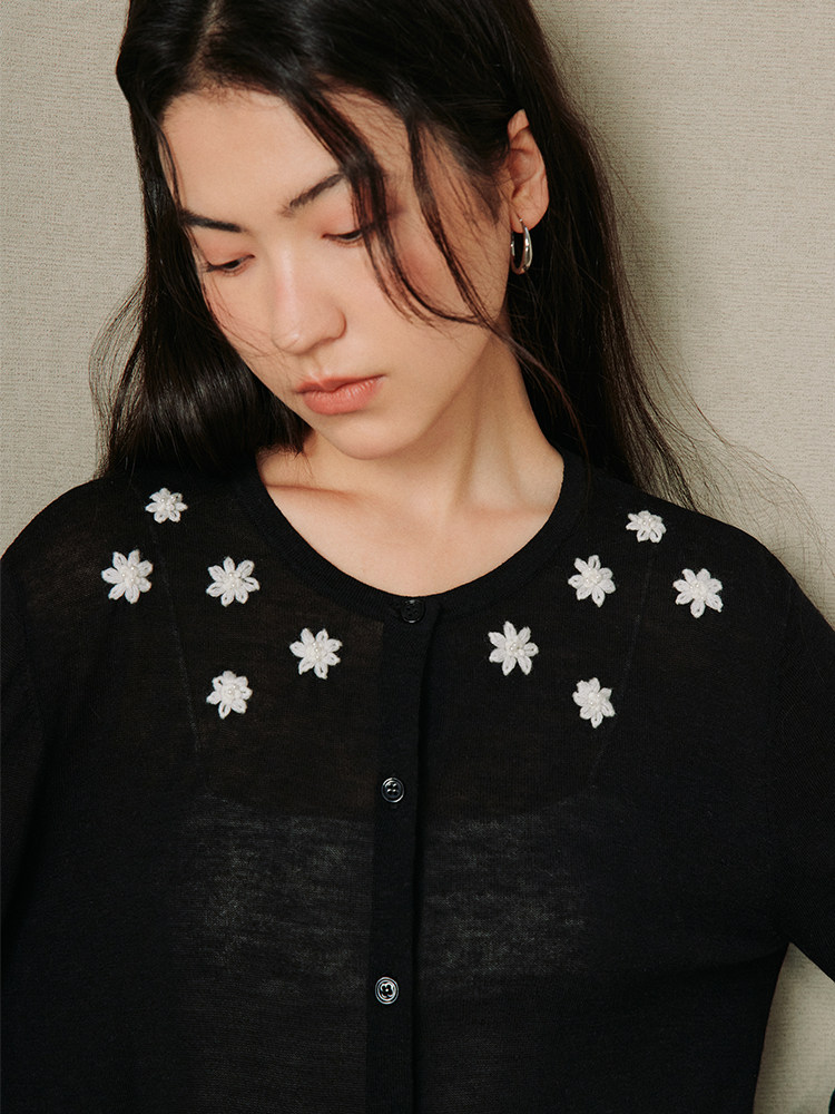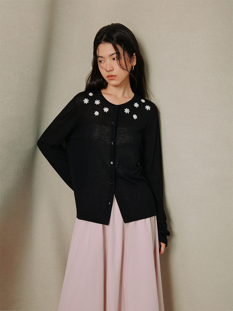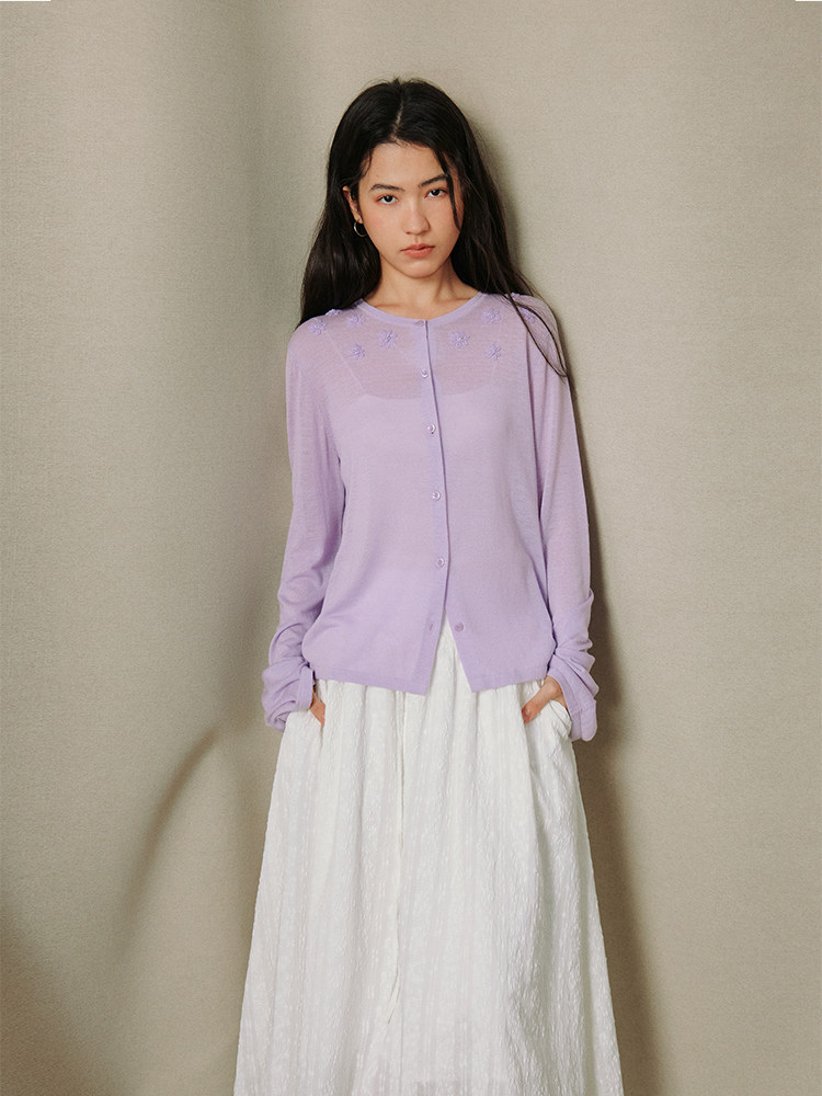 ForPoem 26/SS 原创设计汉麻莱赛尔轻薄花朵针织罩衫开衫