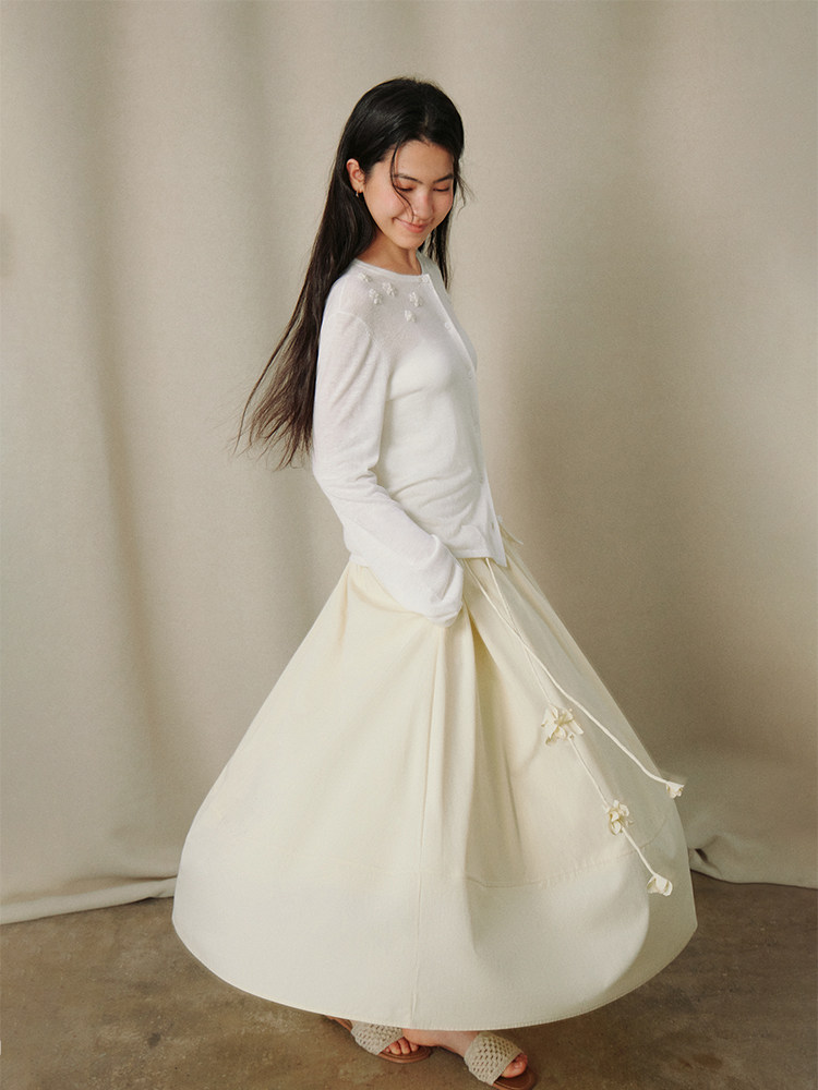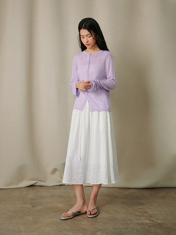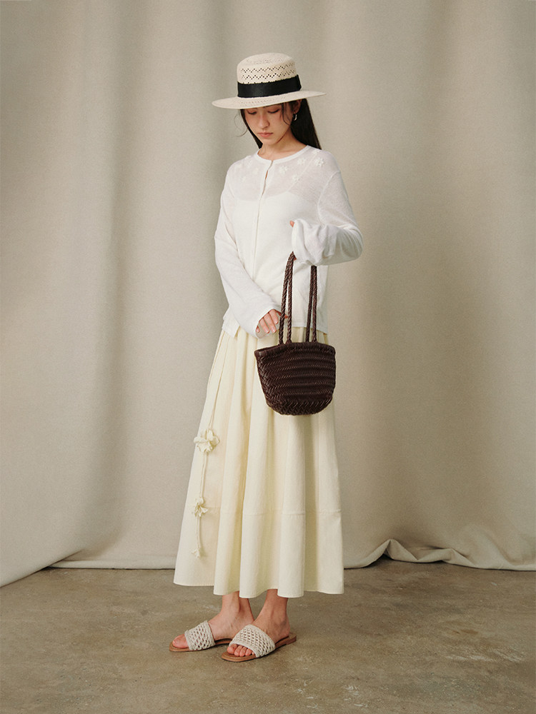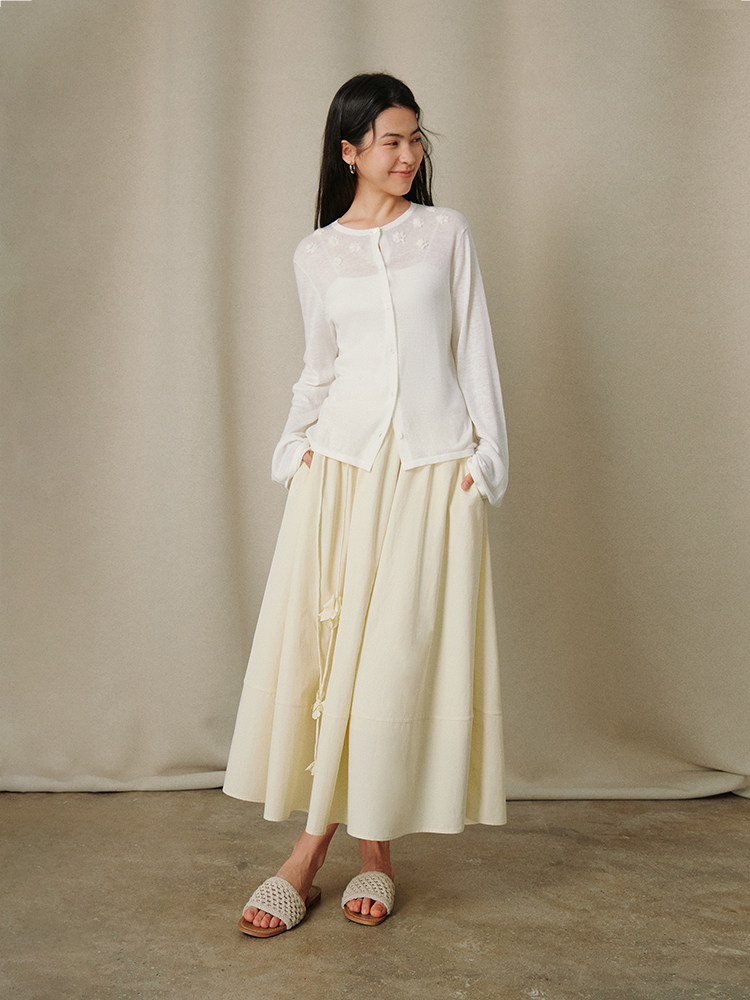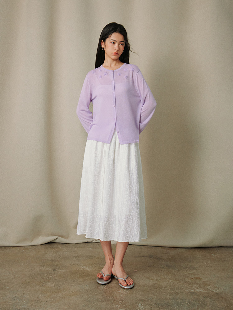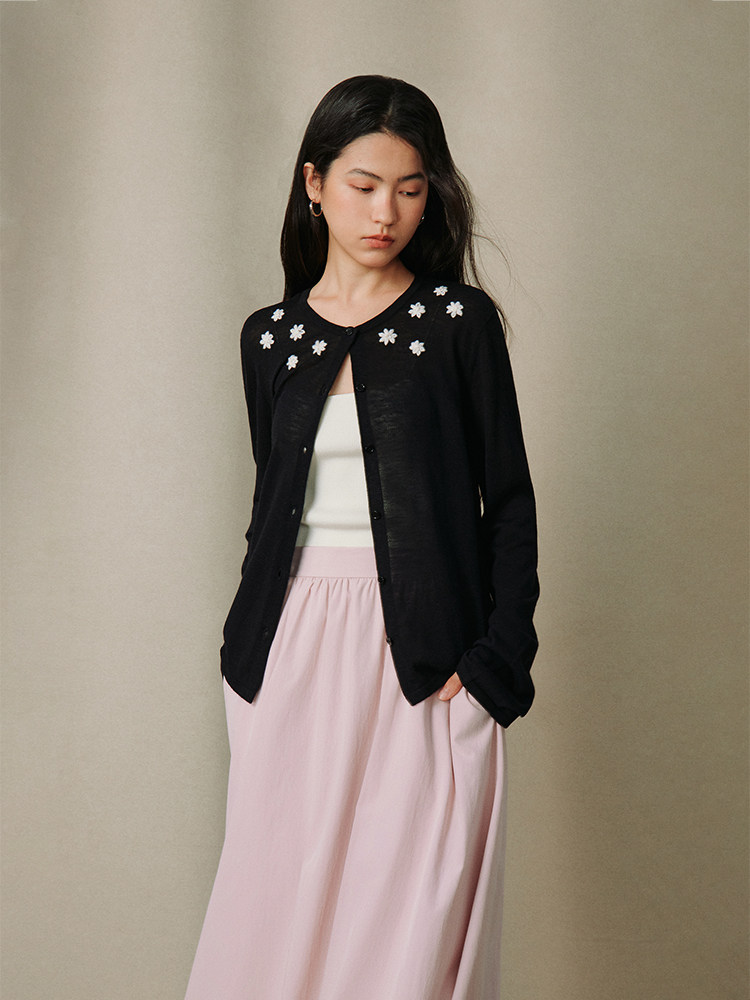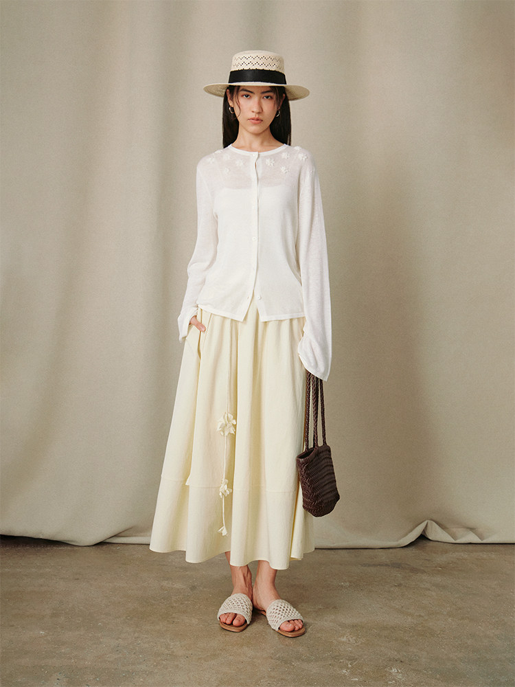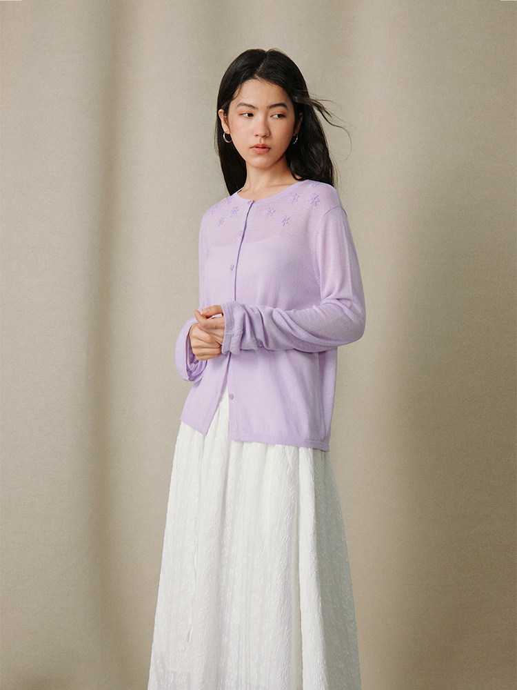 ForPoem 26/SS 原创设计汉麻莱赛尔轻薄花朵针织罩衫开衫