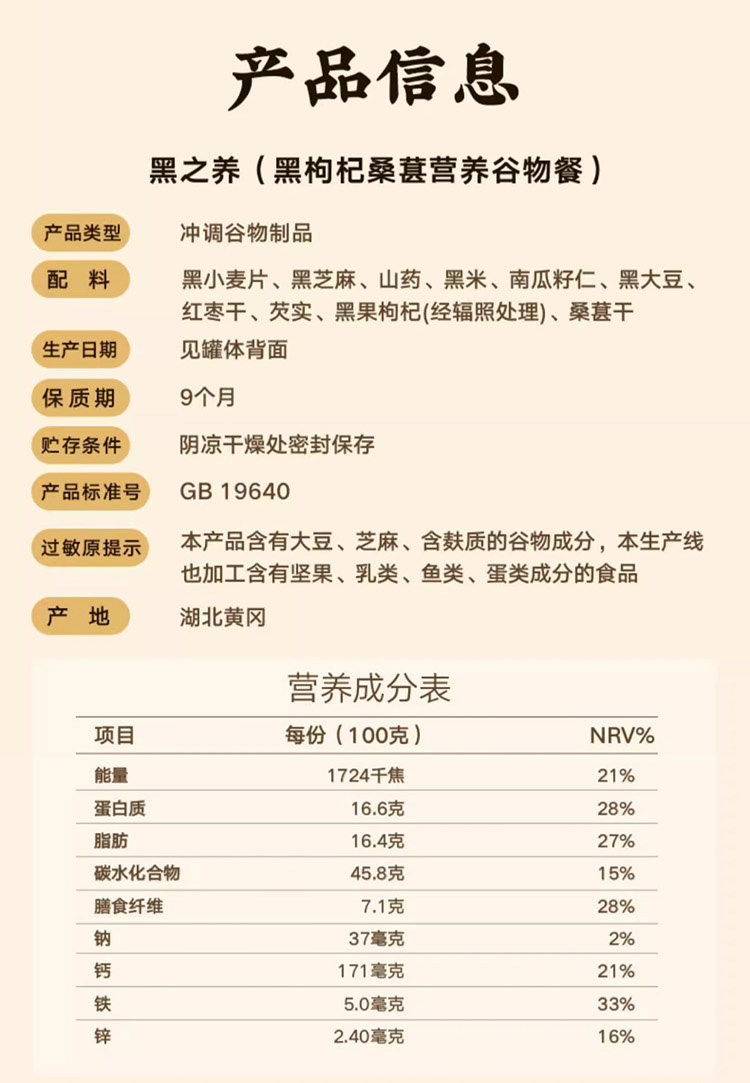 五谷磨房黑色派833g(黑枸杞谷物营养餐)