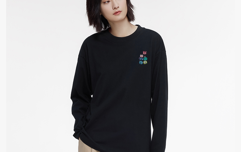 「棉的美学」纯棉圆领打底T恤春秋新款萌趣小新印花甜系百搭上衣