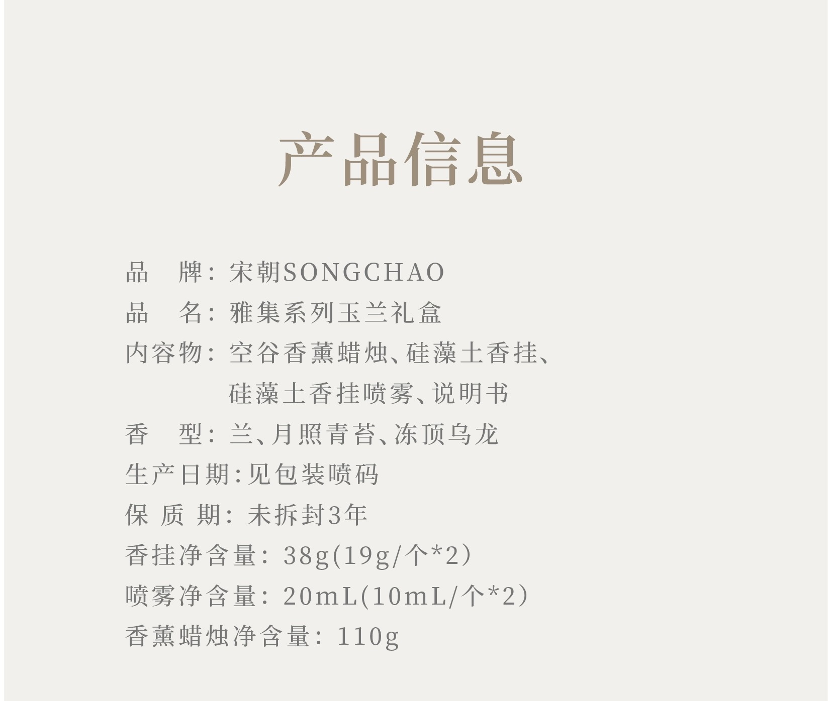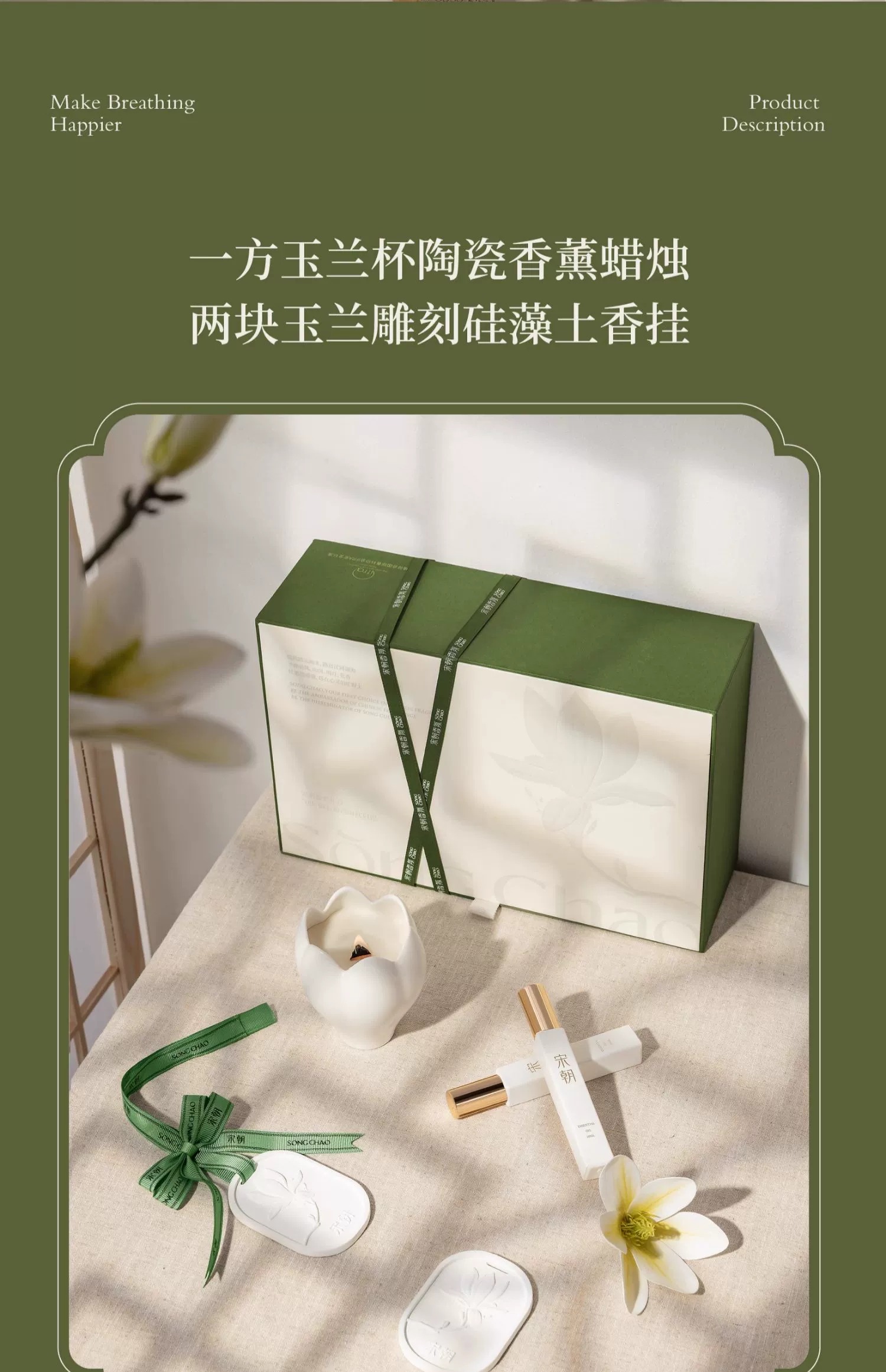 宋朝雅集系列玉兰礼盒(香薰蜡烛*1、硅藻土香挂*1,喷雾*2)