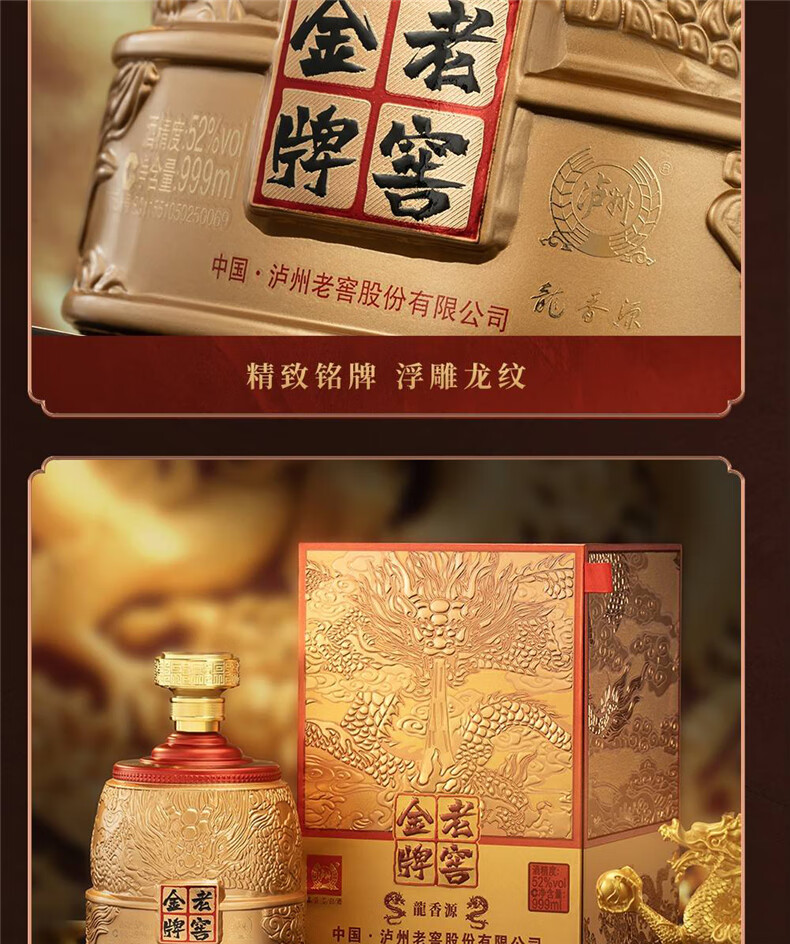 泸州老窖金牌龍香源52度浓香型白酒999ml*1坛,龙头浮雕精致瓶身,红金配色尊贵感拉满