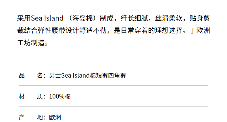 【海岛棉系列】SUNSPEL男士经典款Sea Island棉四角内裤舒适透气