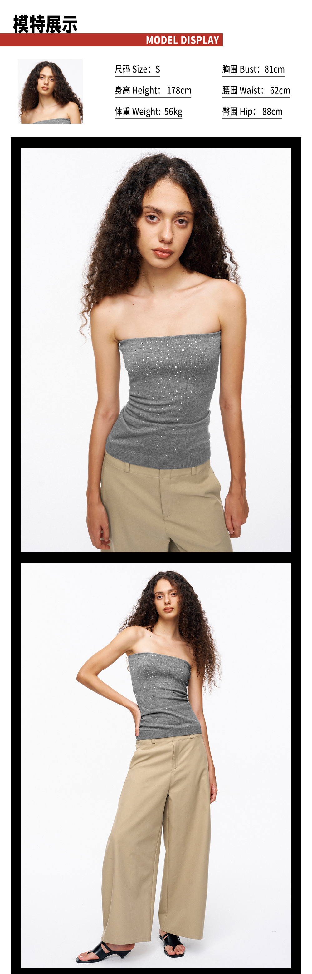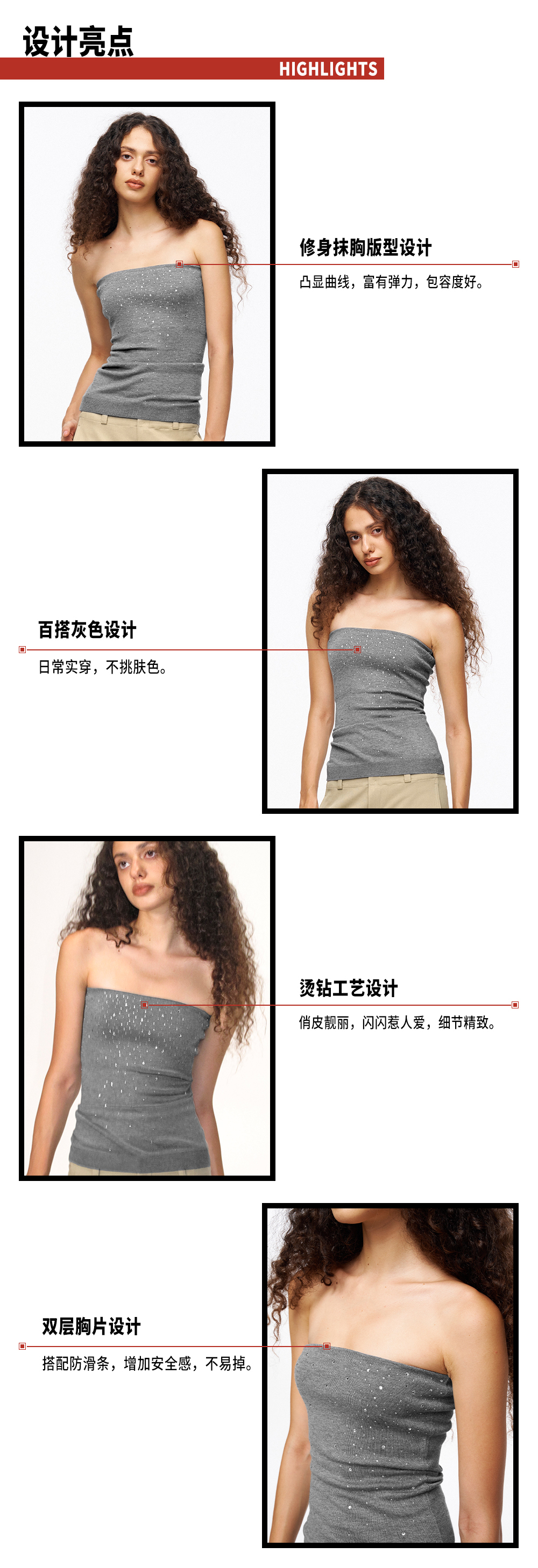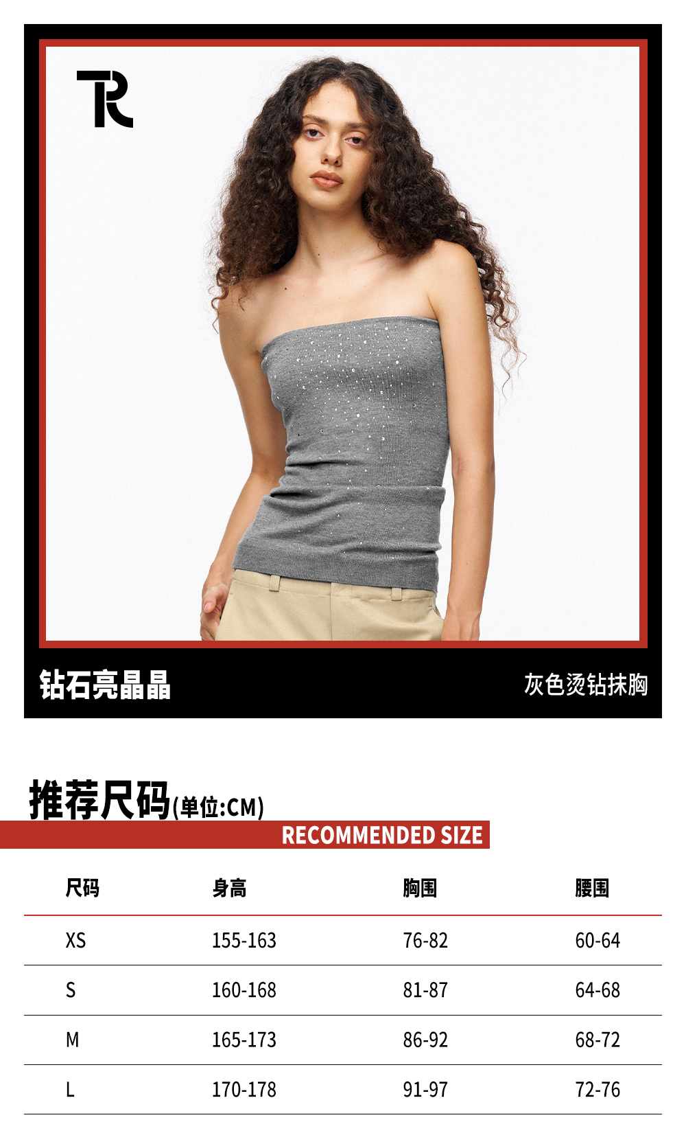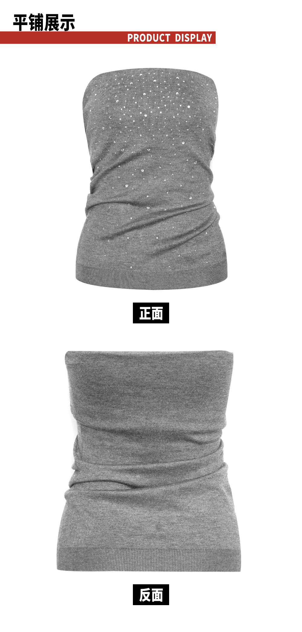 TR她热 钻石亮晶晶 灰色针织烫钻弹力显瘦百搭抹胸上衣