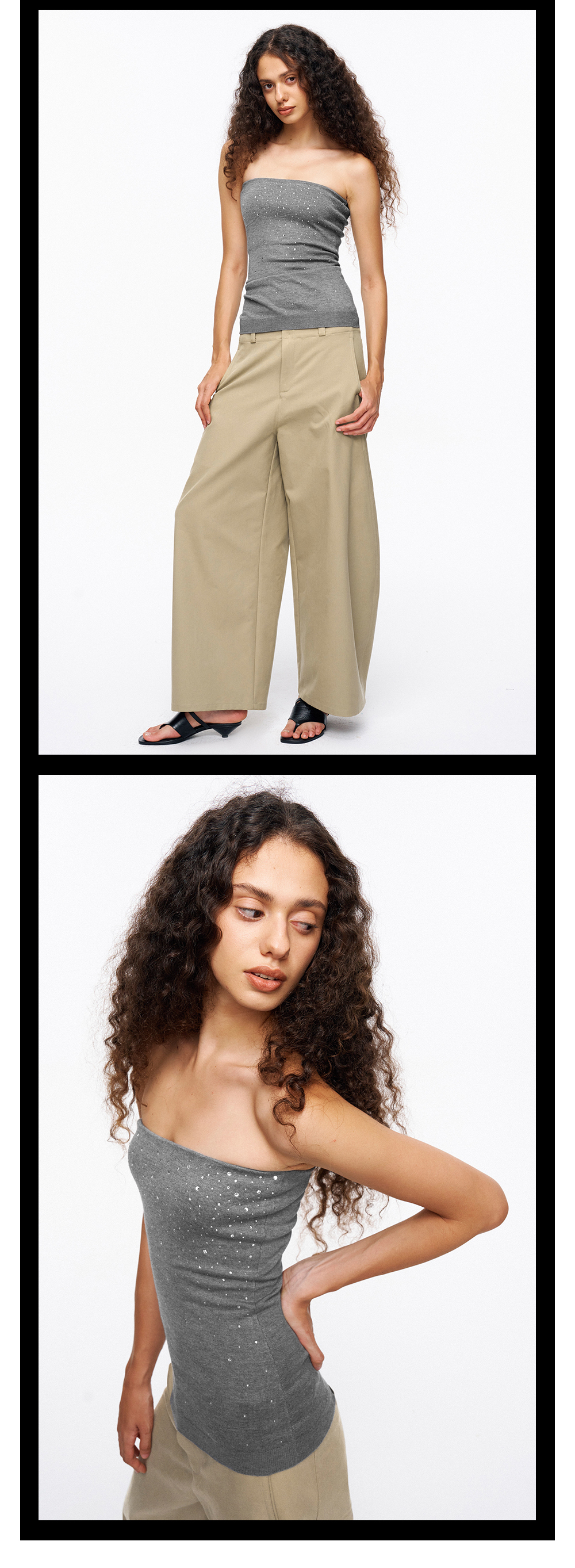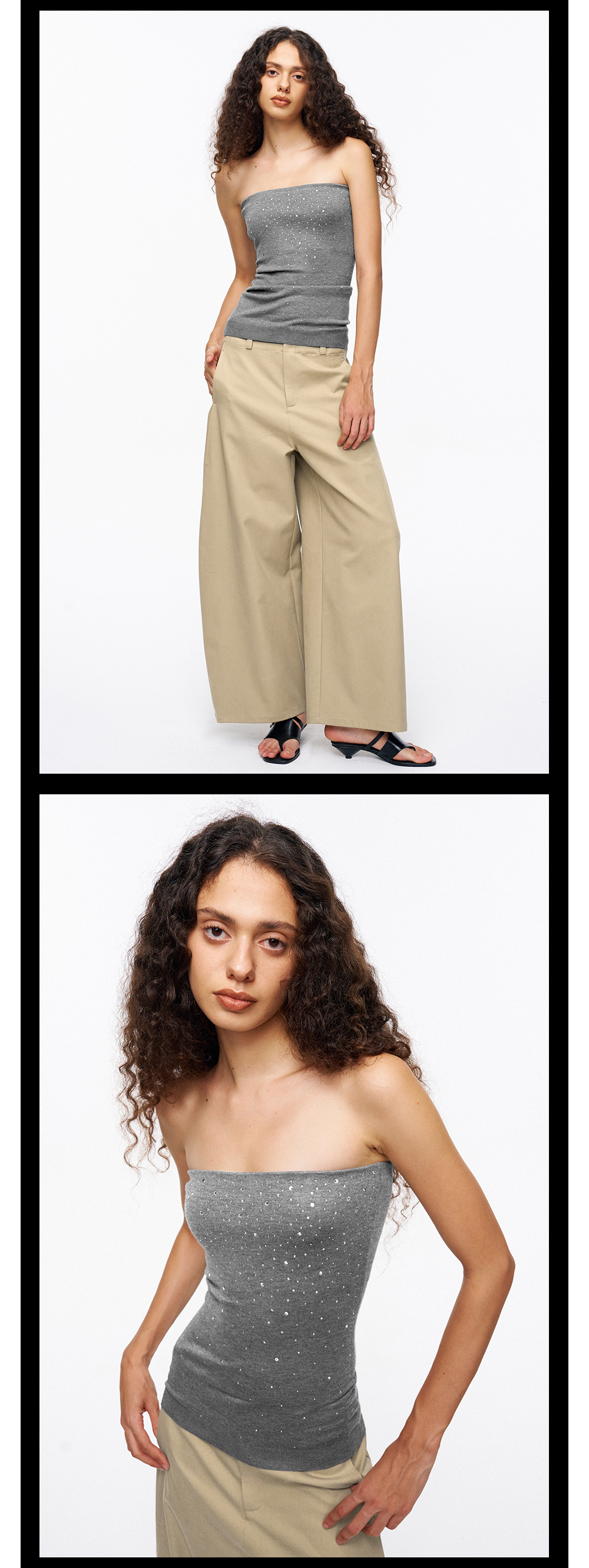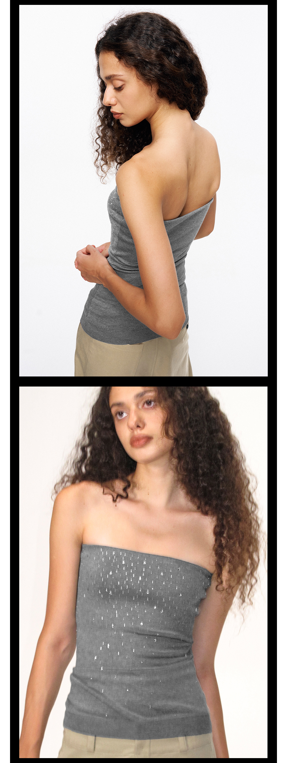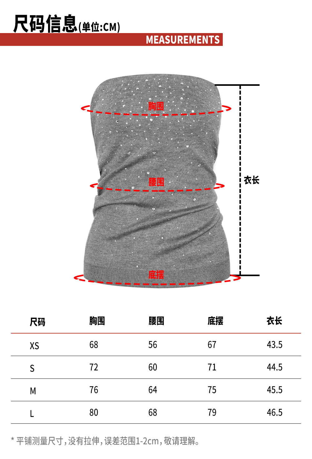 TR她热 钻石亮晶晶 灰色针织烫钻弹力显瘦百搭抹胸上衣