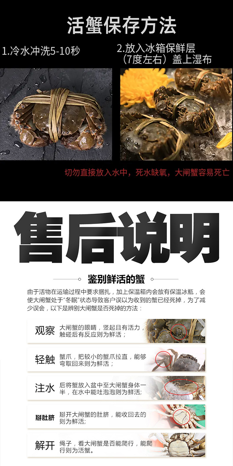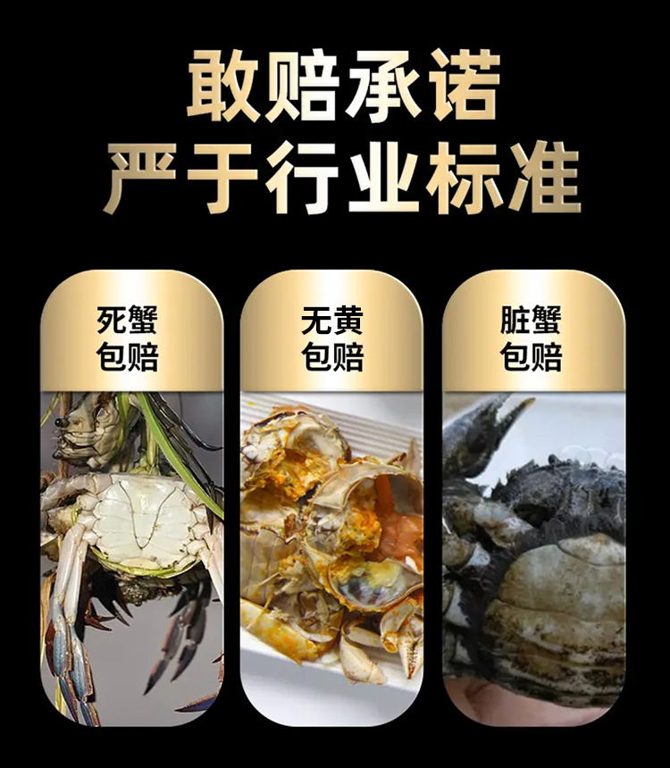 售后:蟹卡售后海阔公司负责,死蟹按只赔偿