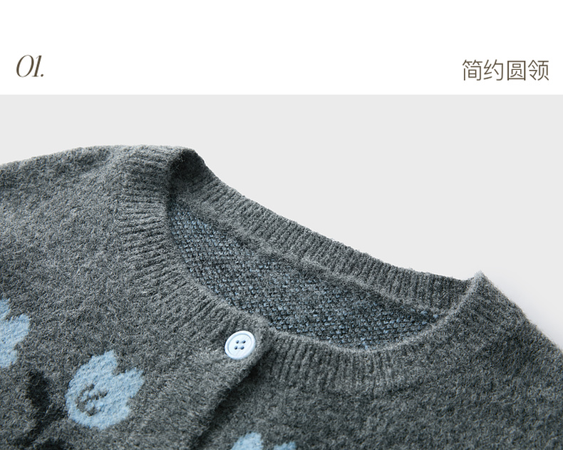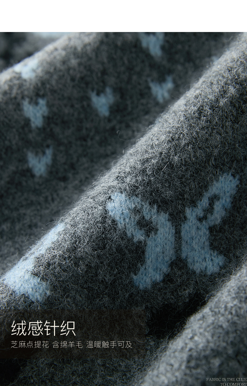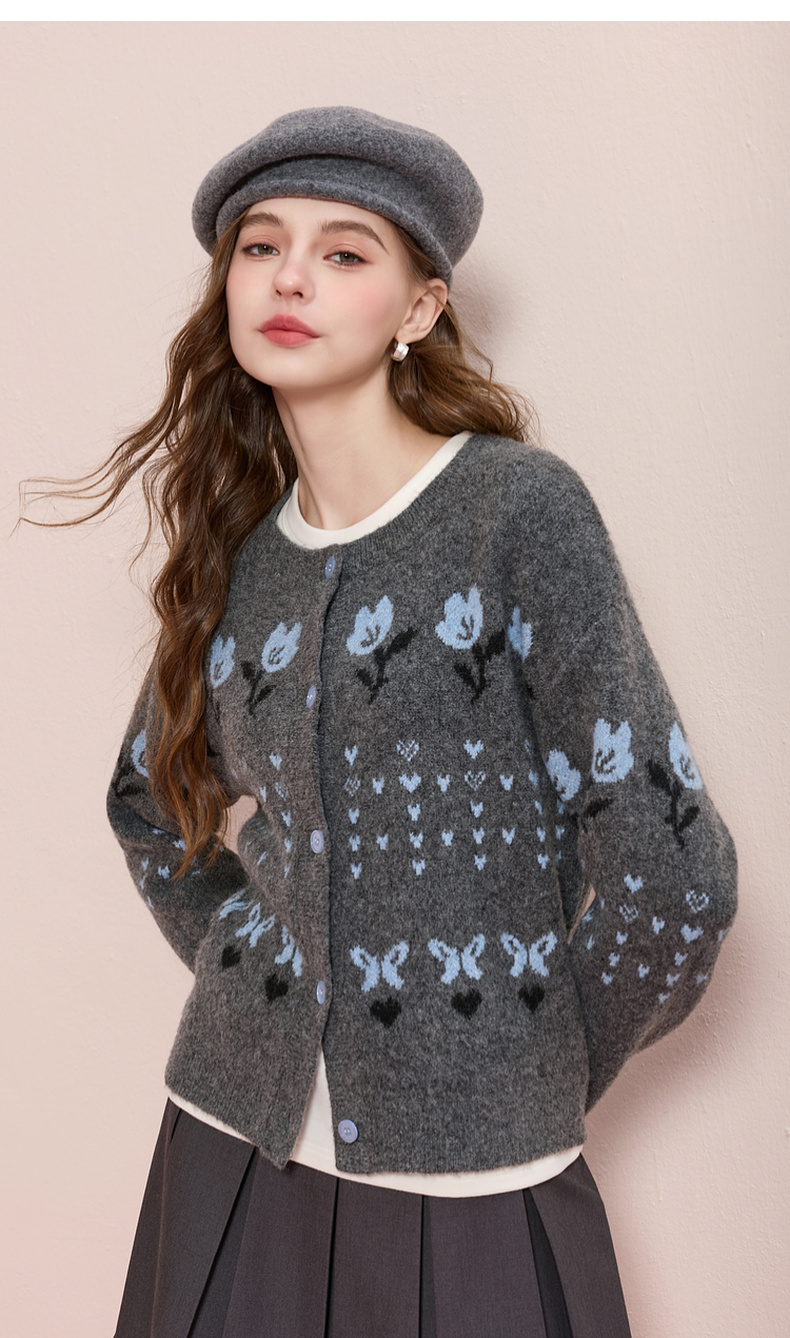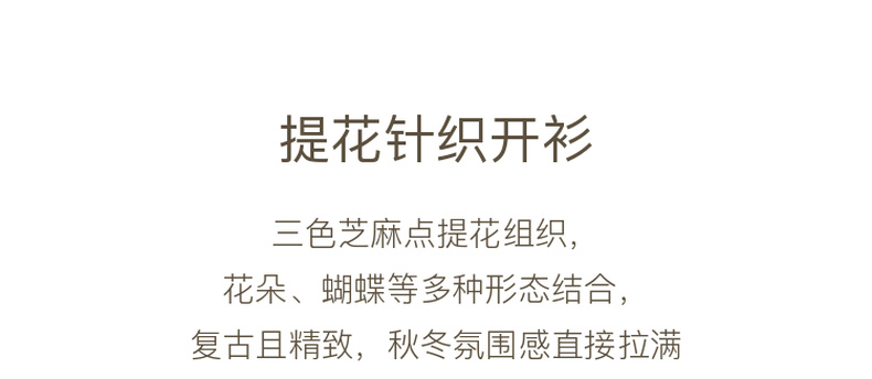 三彩2025冬季新款提花针织衫圆领毛衫外套开衫宽松复古M
