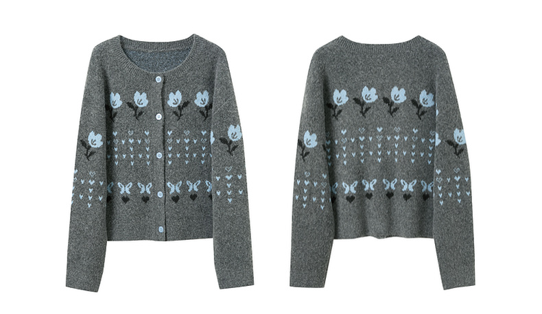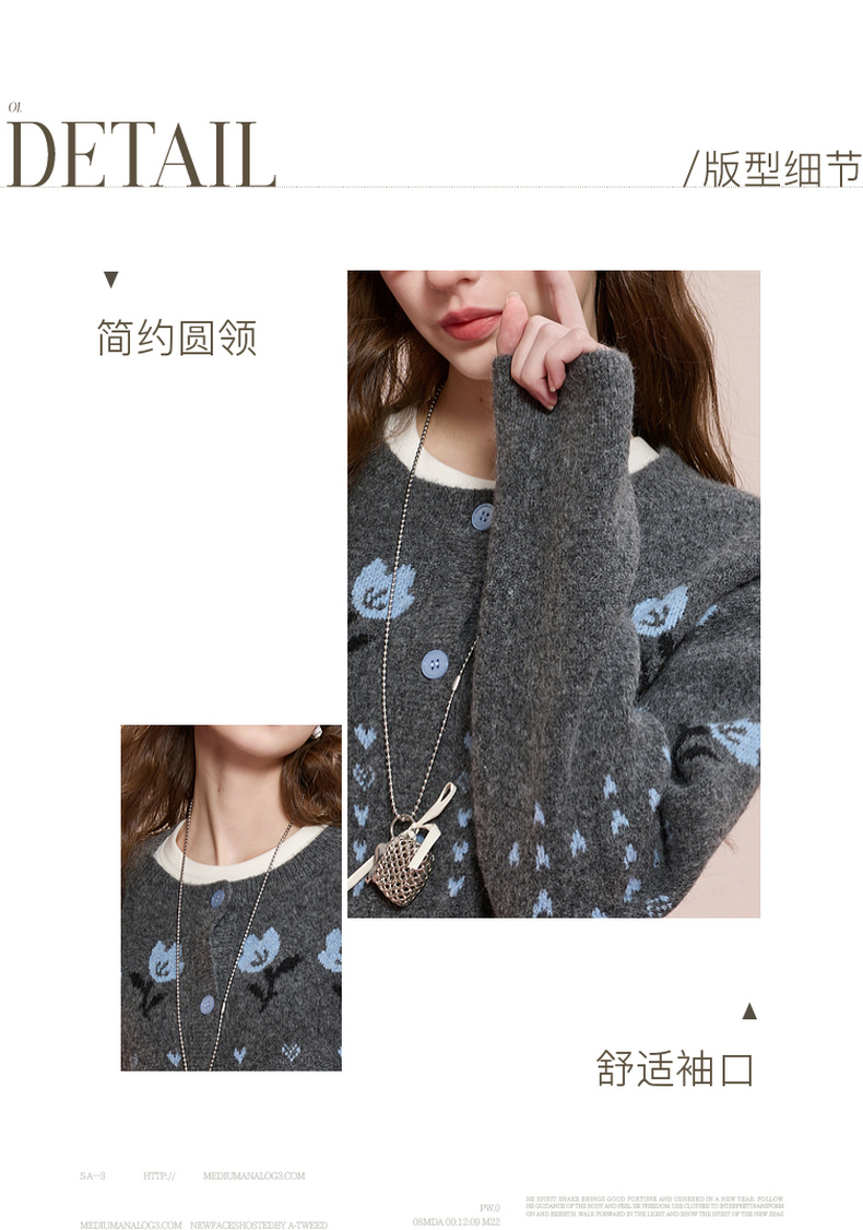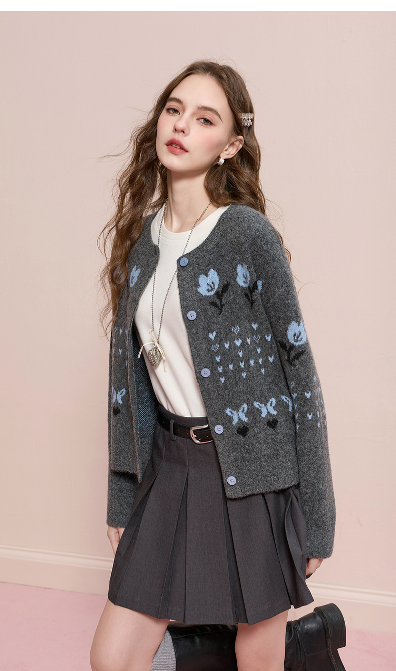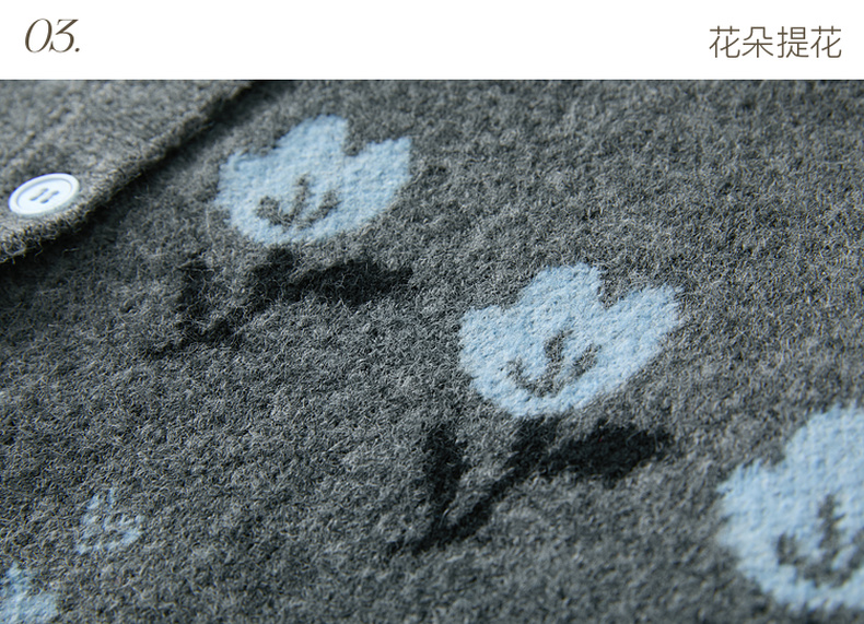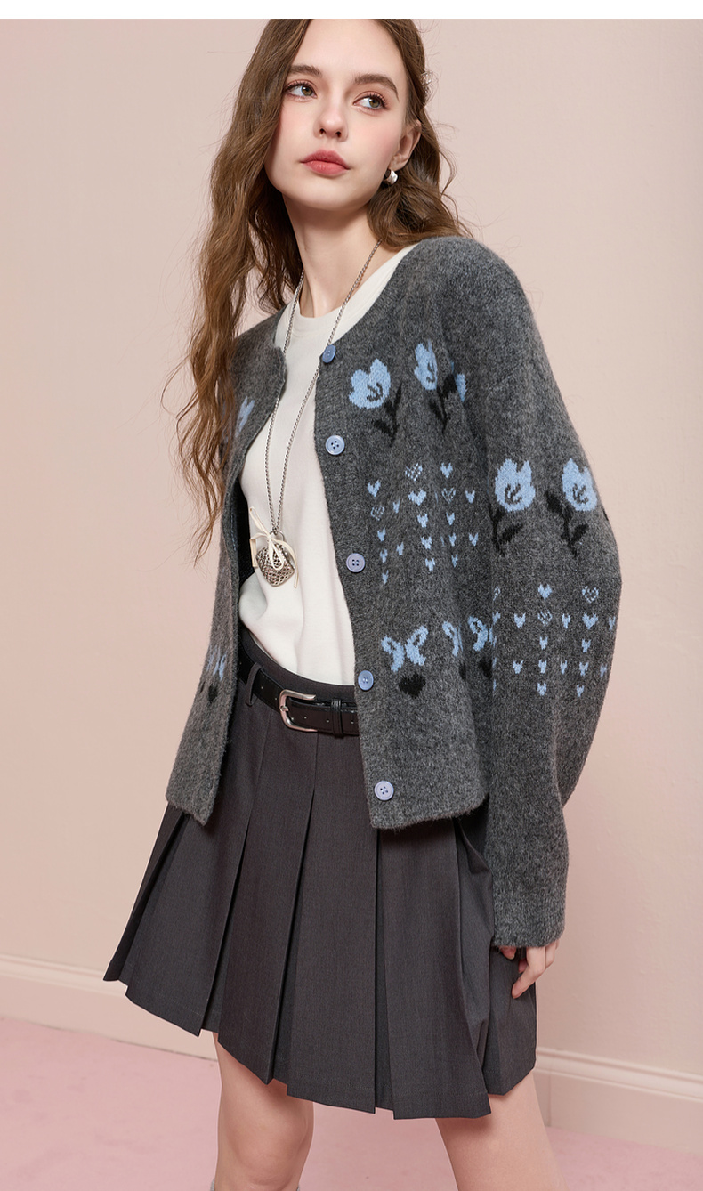 三彩2025冬季新款提花针织衫圆领毛衫外套开衫宽松复古M