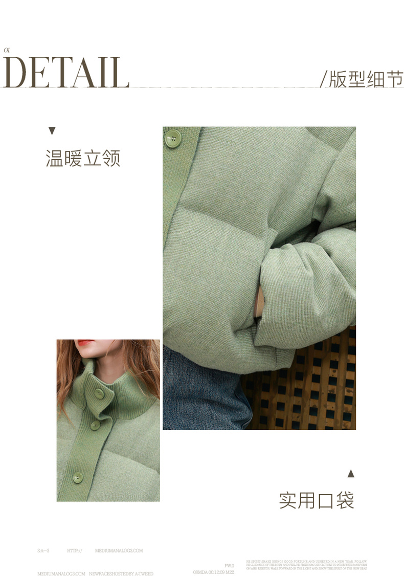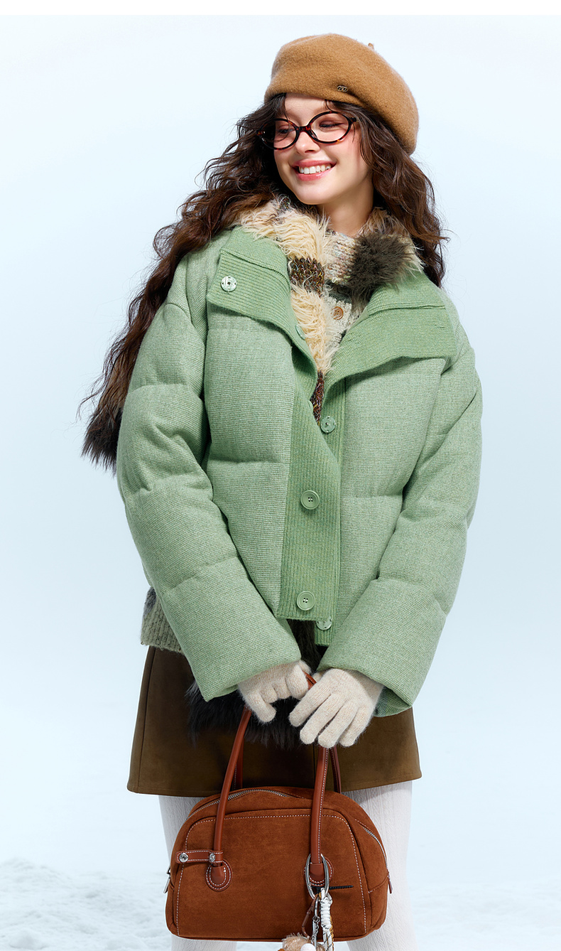 三彩独醒2025冬季新款立领羽绒服型暖90白鸭绒呢子短款F