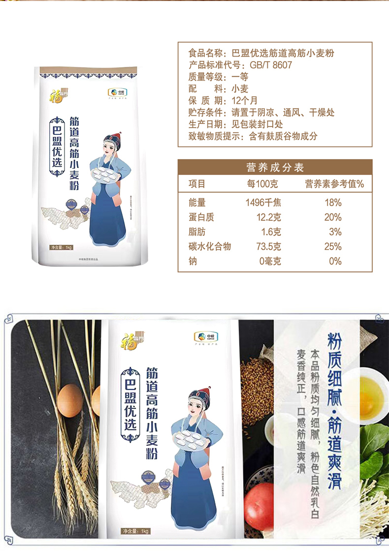 中粮福临门巴盟优选筋道高筋小麦粉礼盒4kg