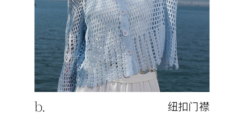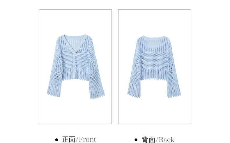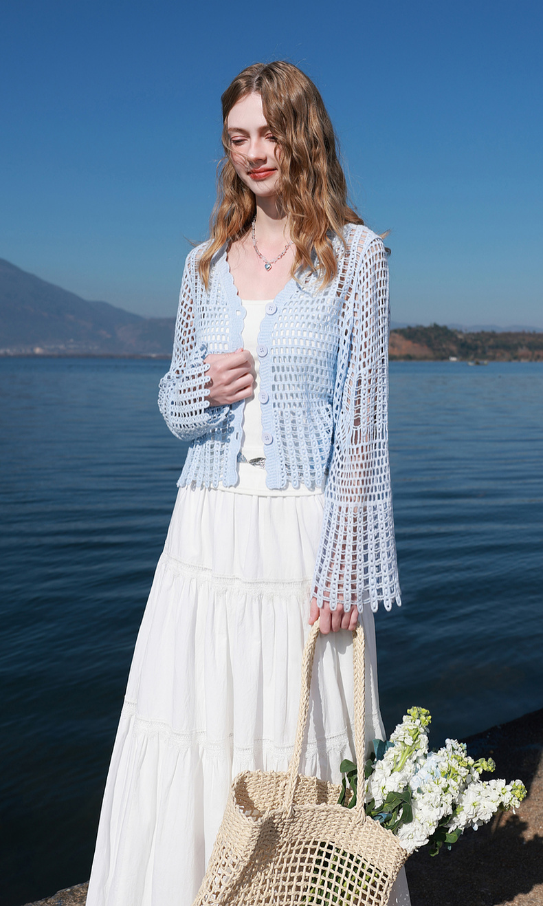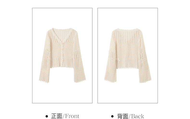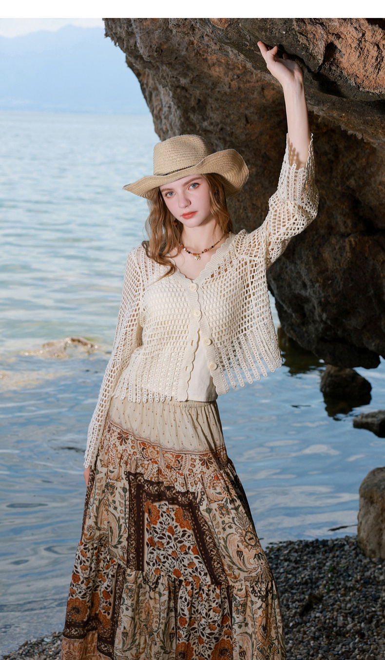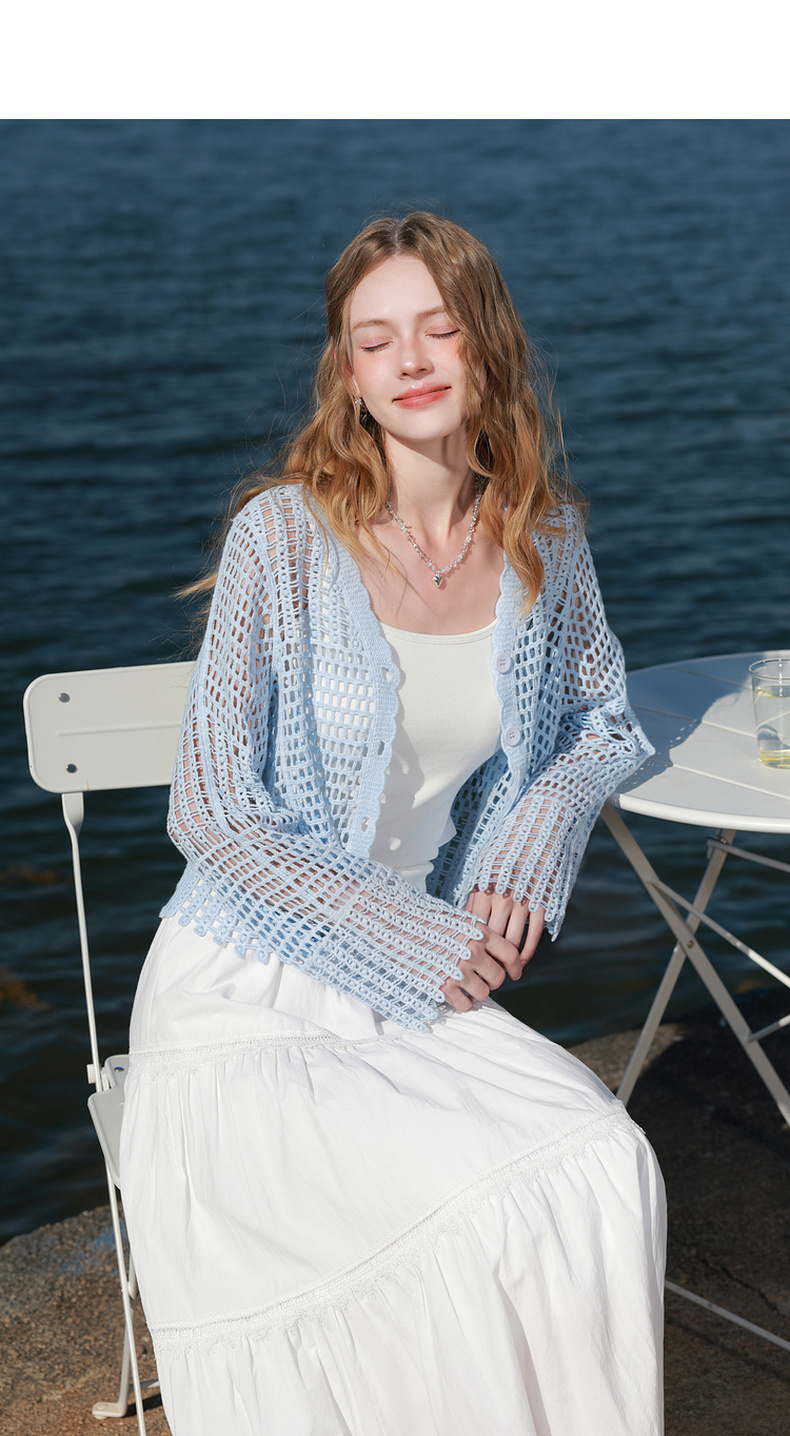 【100棉】三彩2026春季新款V领镂空罩衫针织衫宽松波西米亚开衫M