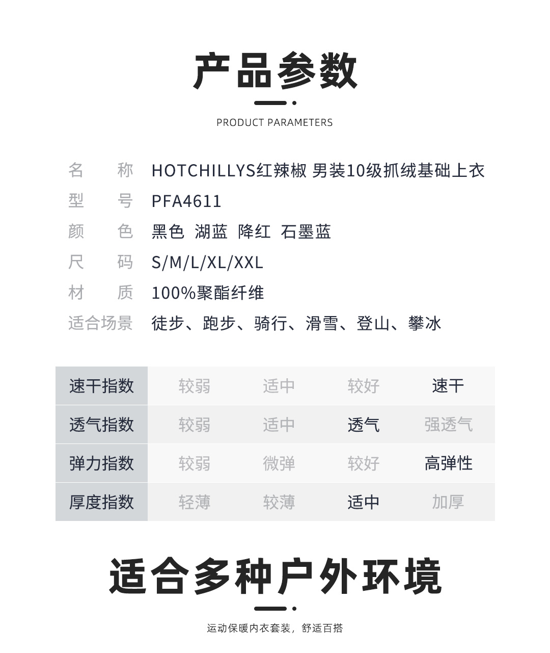 HOTCHILLYS热椒10级男冬户外运动抓绒滑雪速干保暖功能内衣4611