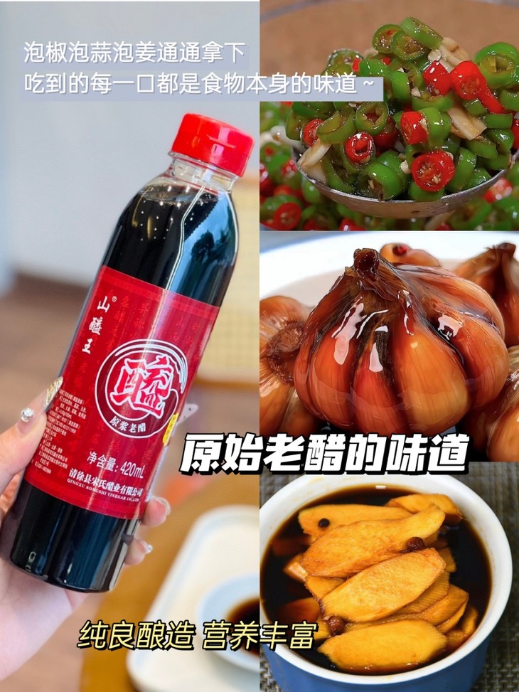 1、产地纯正:来自中国醋都--山西清徐,自古酿醋数山西,追根溯源在清徐。山西清徐老陈醋是四大名醋之首;