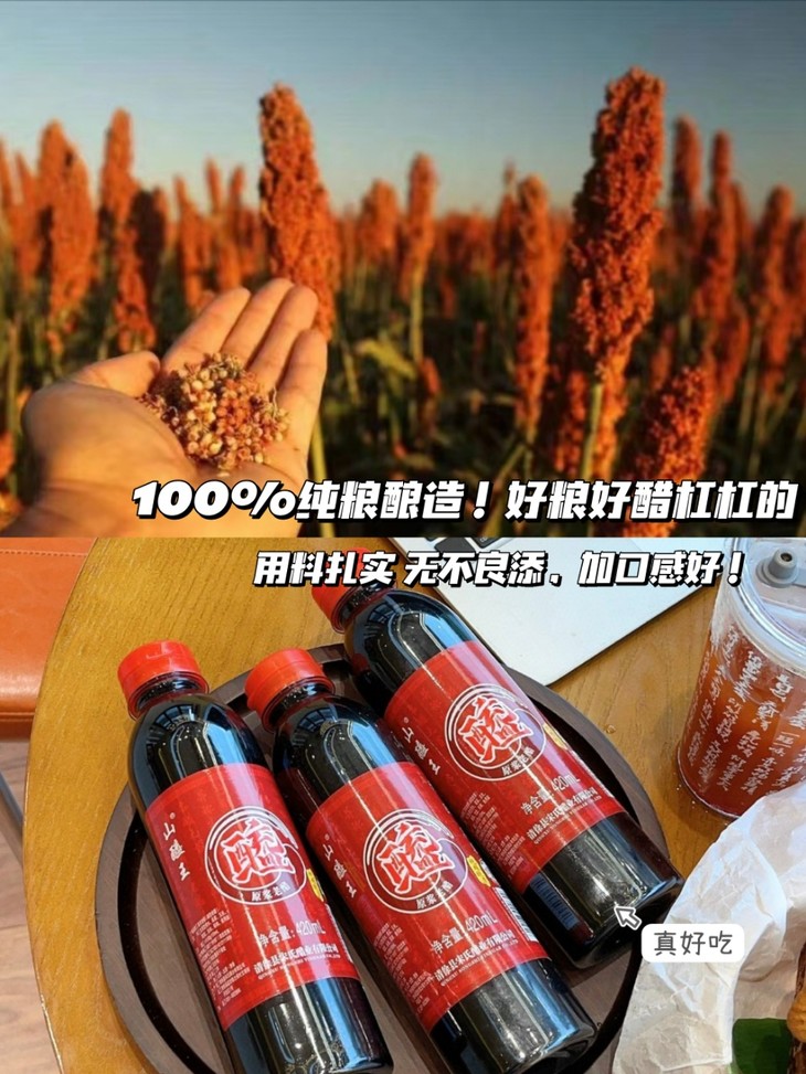 好粮酿好醋我们的醋都是纯粮酿造,不做任何添加,为您的健康保驾护航。以优质高粱为主要原料,采用传统固态发酵工艺酿造,具有酸香甜绵的特点。其色泽红润,闻之芳香扑鼻,入口酸中带甜,口感醇厚且绵长。无论是蘸饺子、拌凉菜,还是烹饪料理,都能为菜肴增添独特的风味。