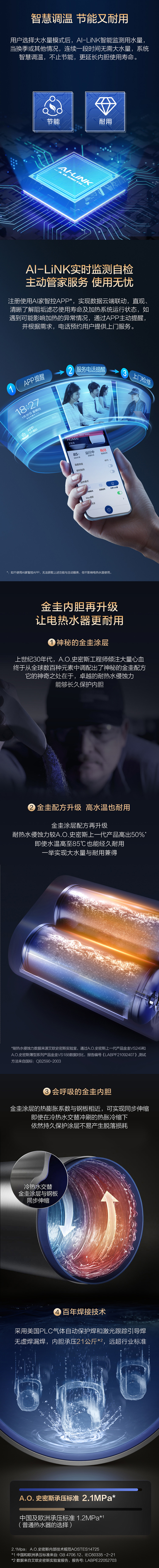 史密斯/电热水器/EWH-60HGMAI/大水量洗澡沐浴金圭内胆卫生间储水器 60L 一级能效