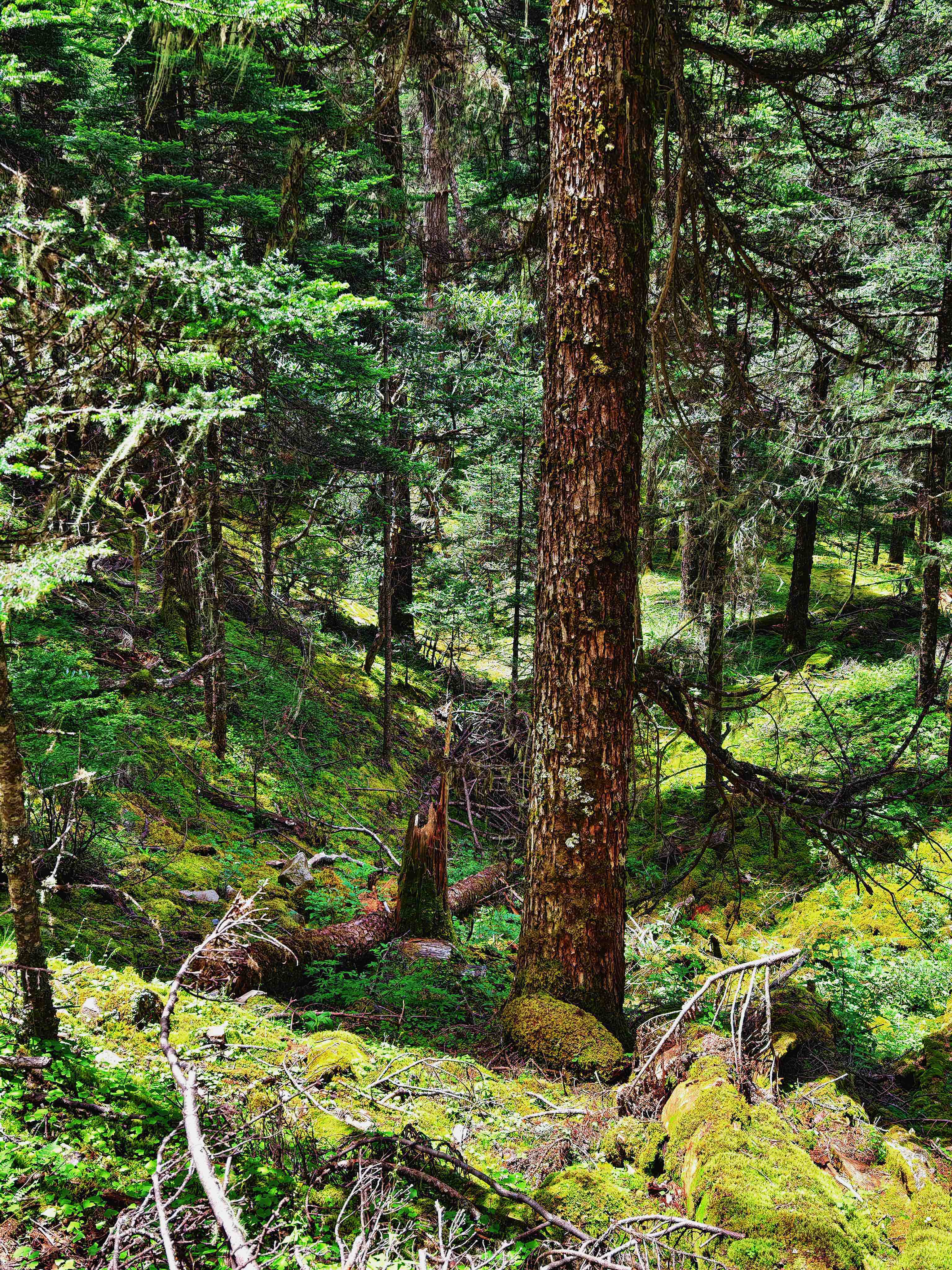 2. 途经·石头林与枯树林:嶙峋的怪石是隆亚神山坠落的铠甲,而枯木扭曲的枝干则诉说着黑森林的古老秘密。徒步者在此感受自然的力量与生命的轮回。