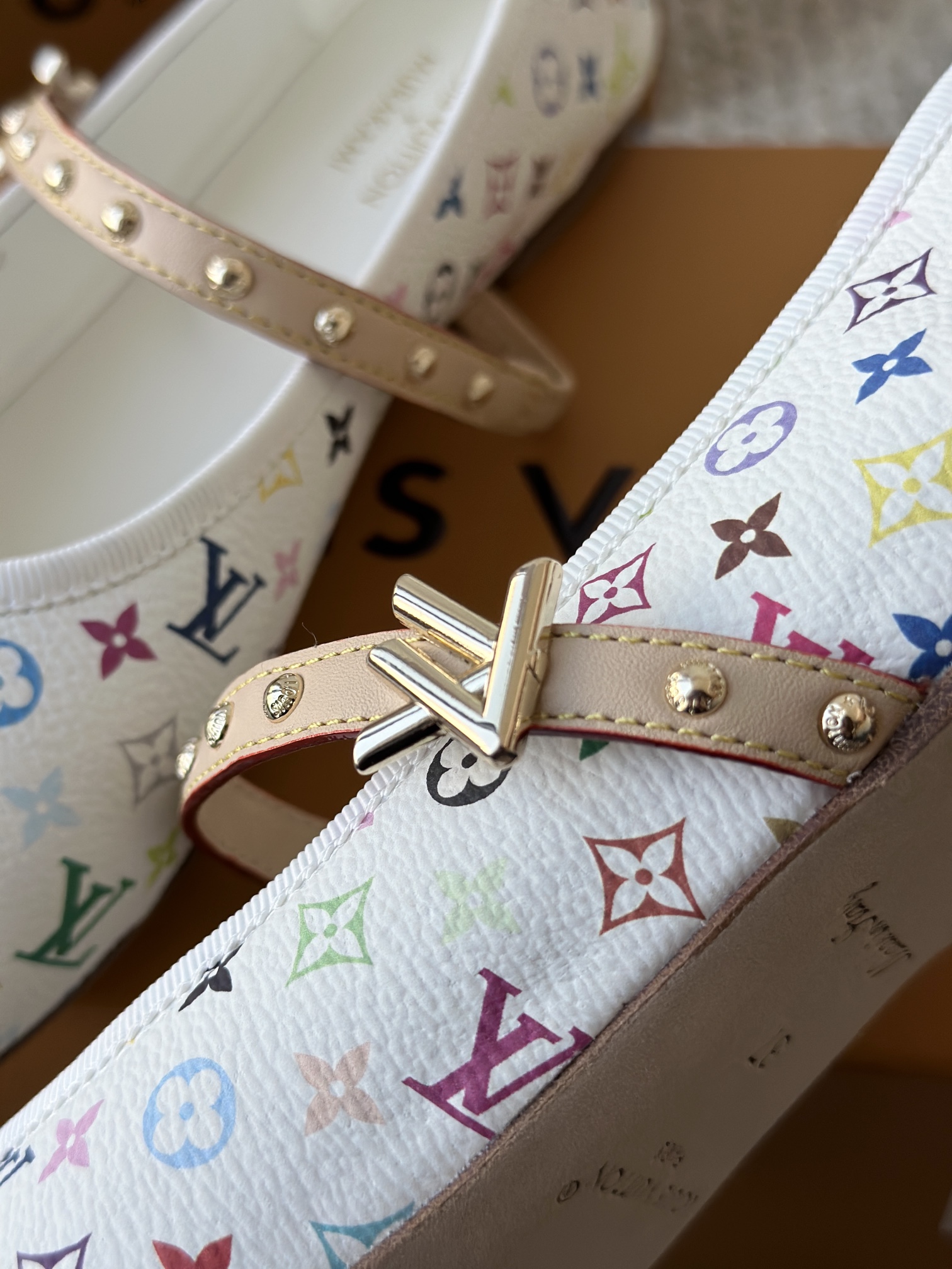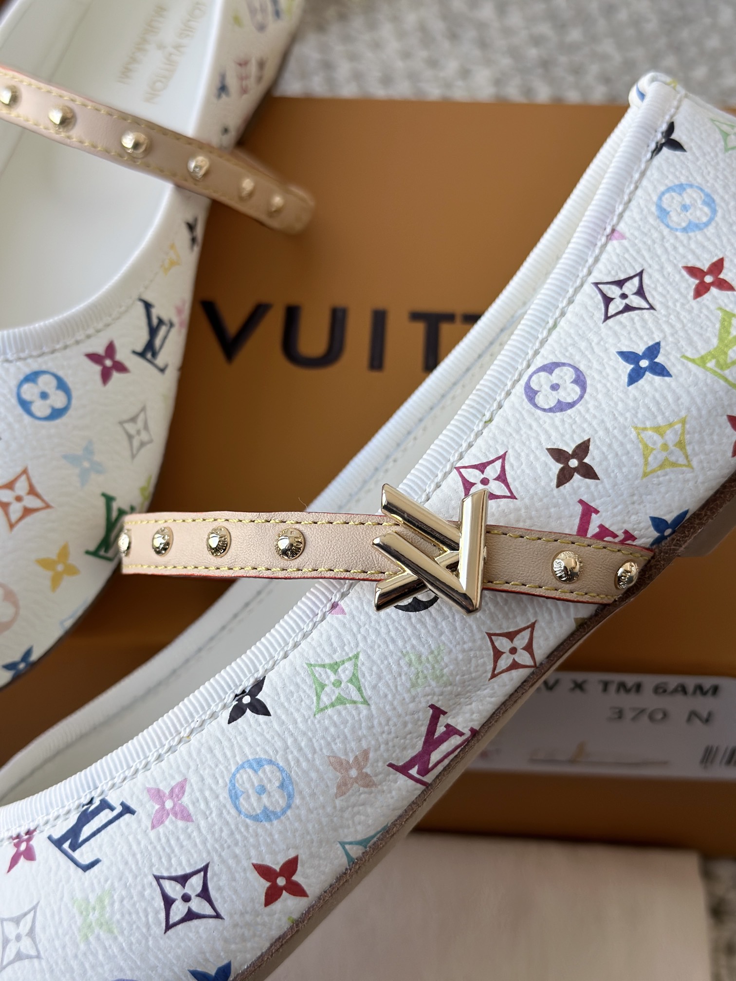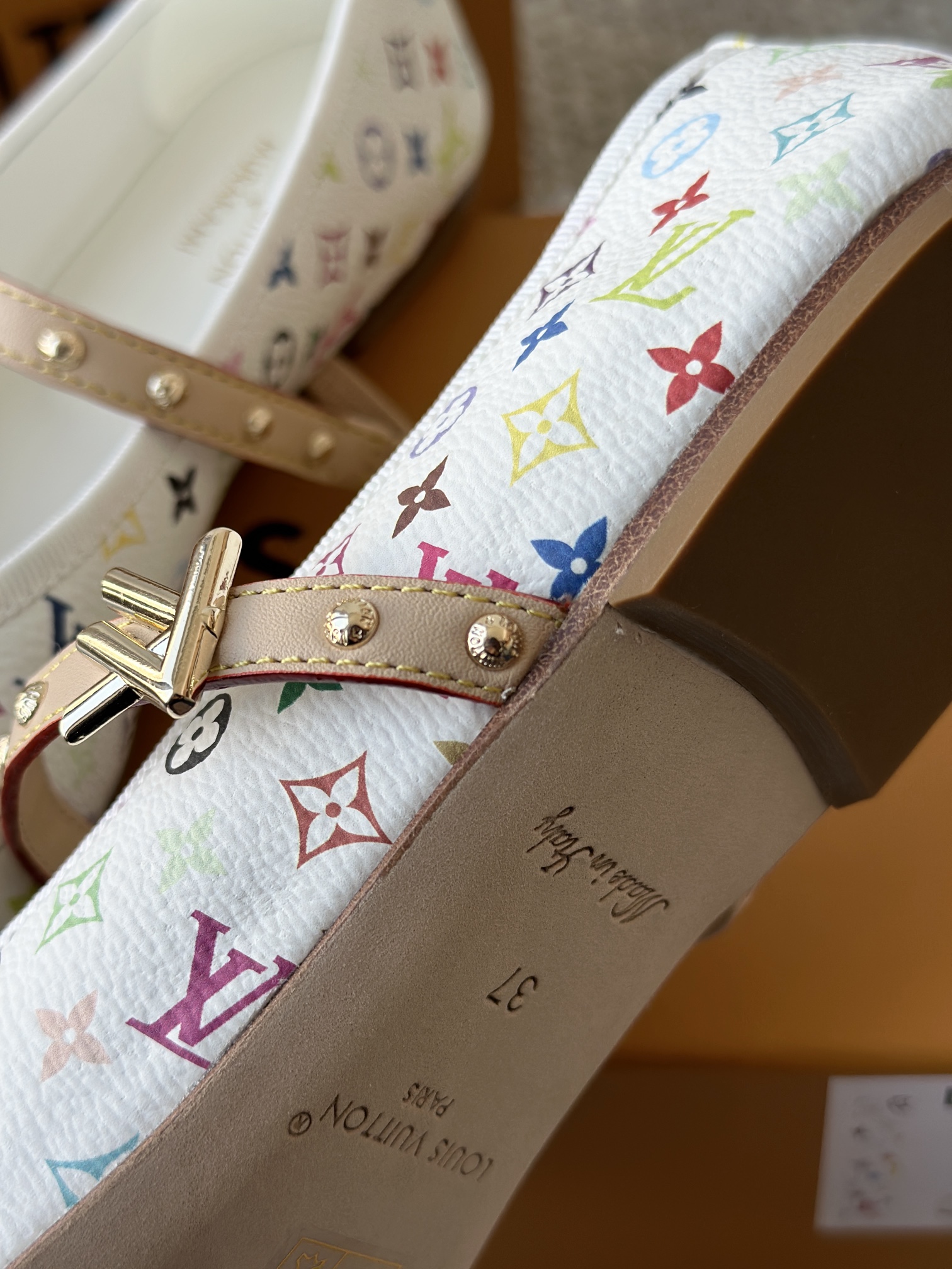 LV x 村上隆联名款玛丽珍!! 这双是牛皮面的,越看越喜欢💕