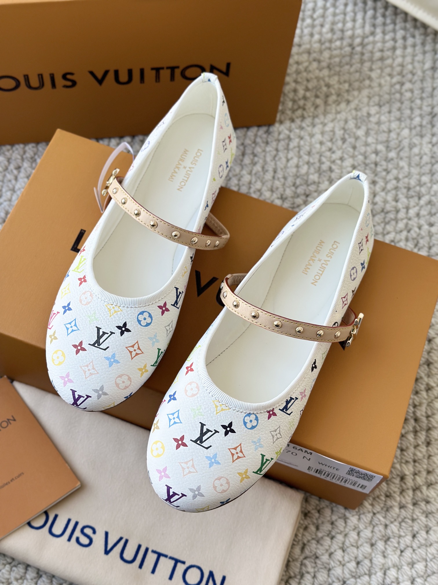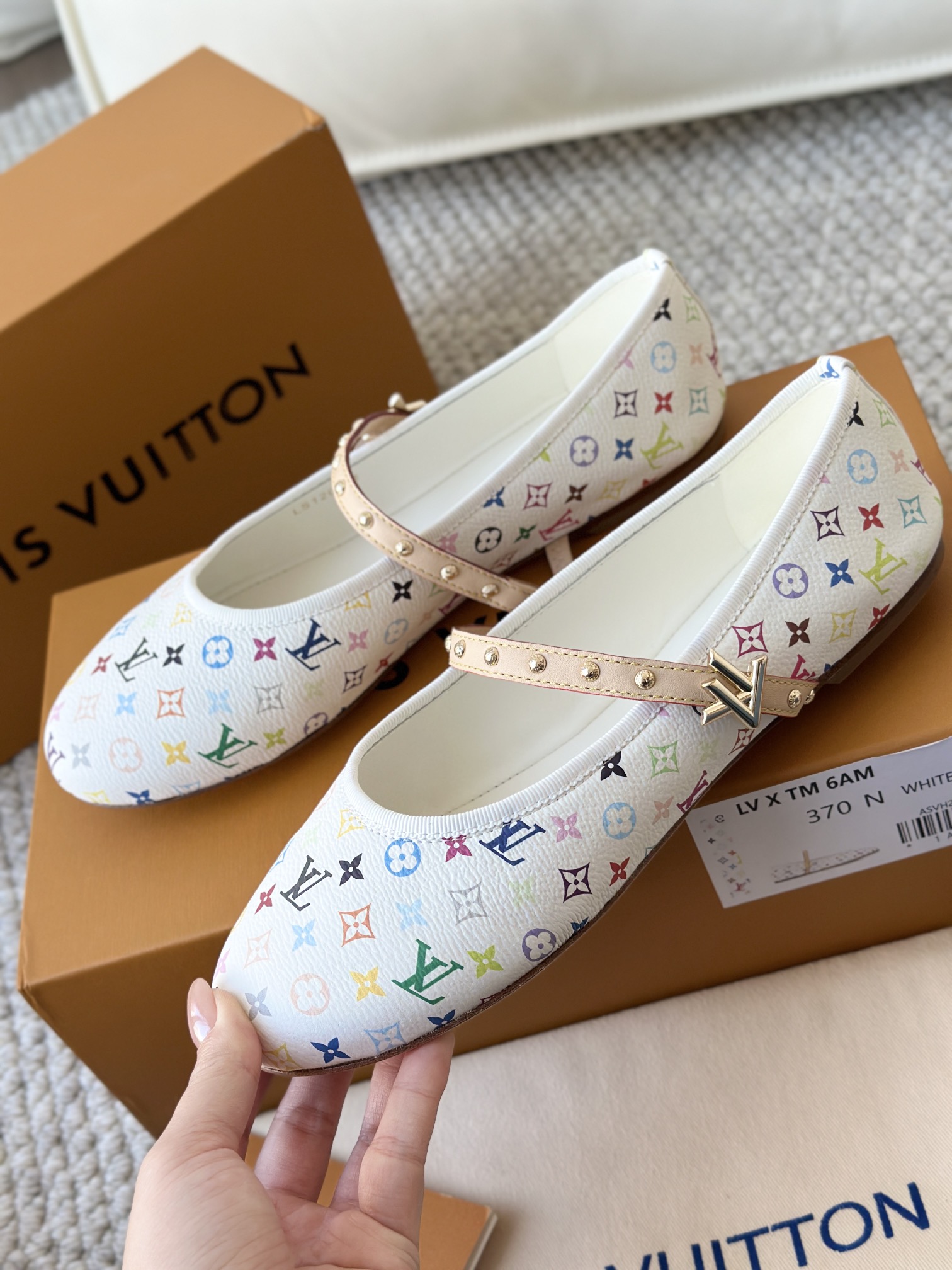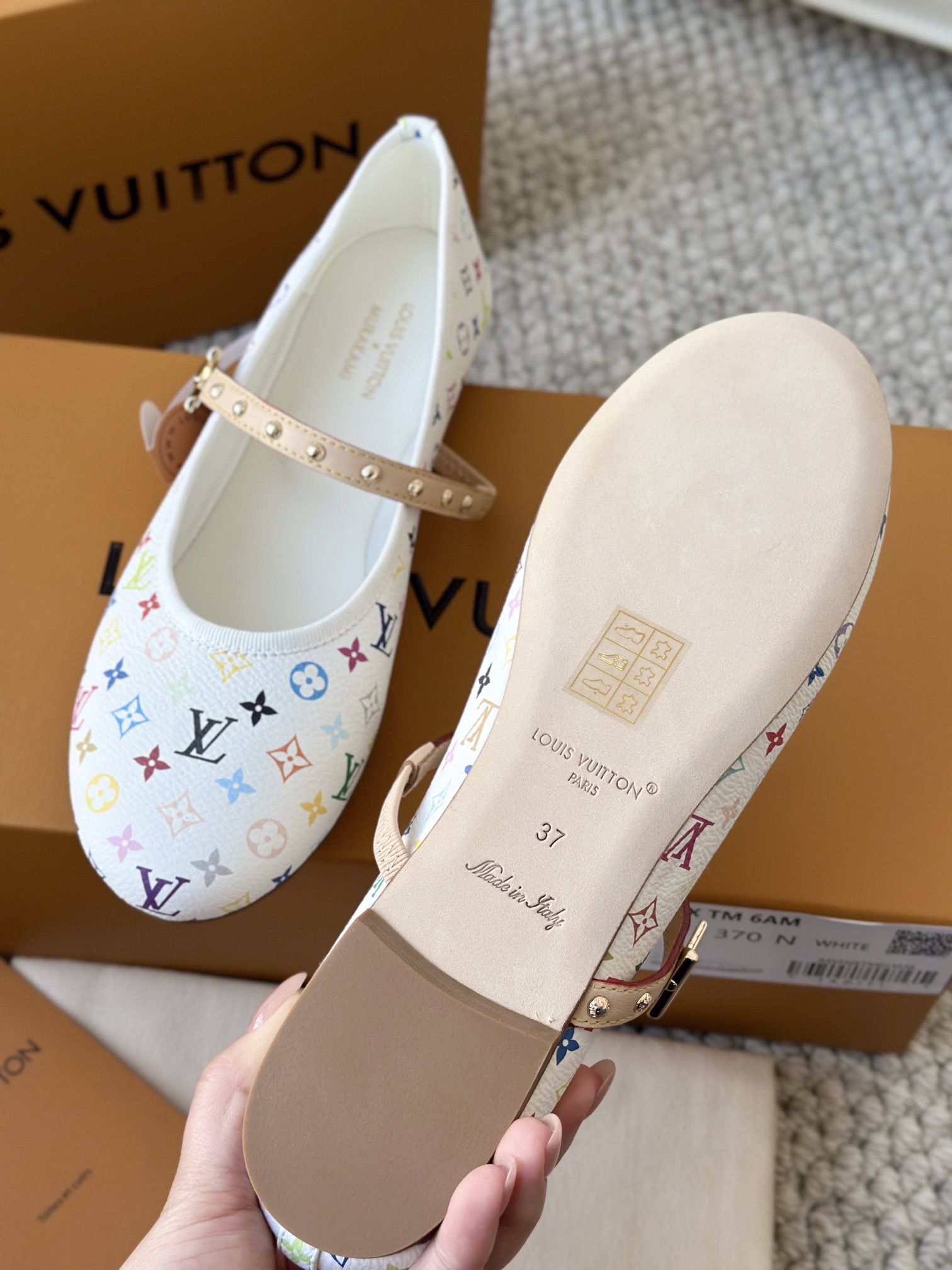 LV x 村上隆联名款玛丽珍!! 这双是牛皮面的,越看越喜欢💕