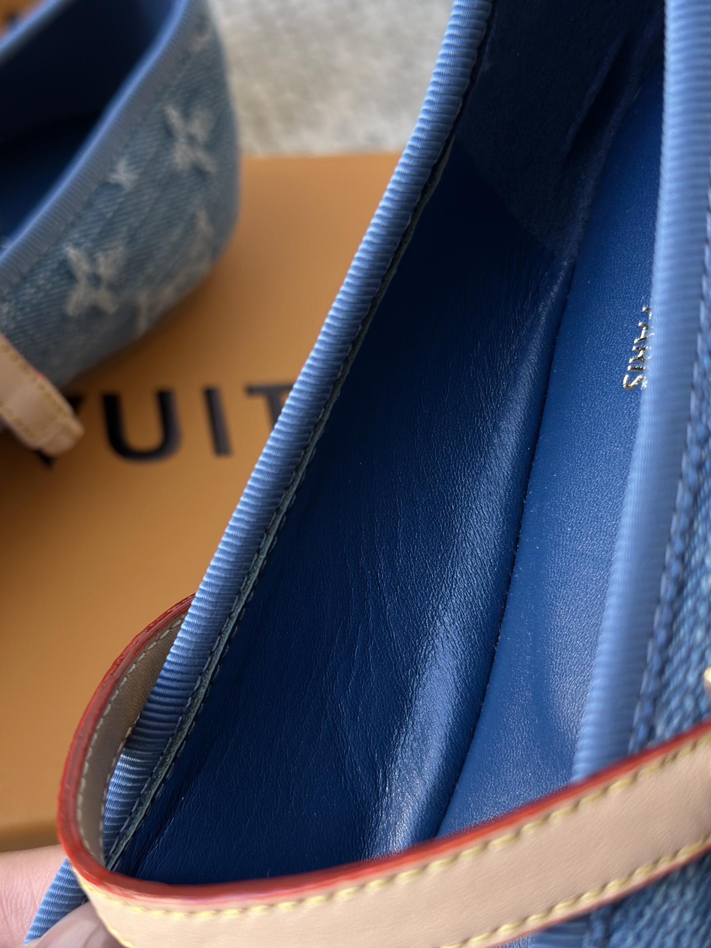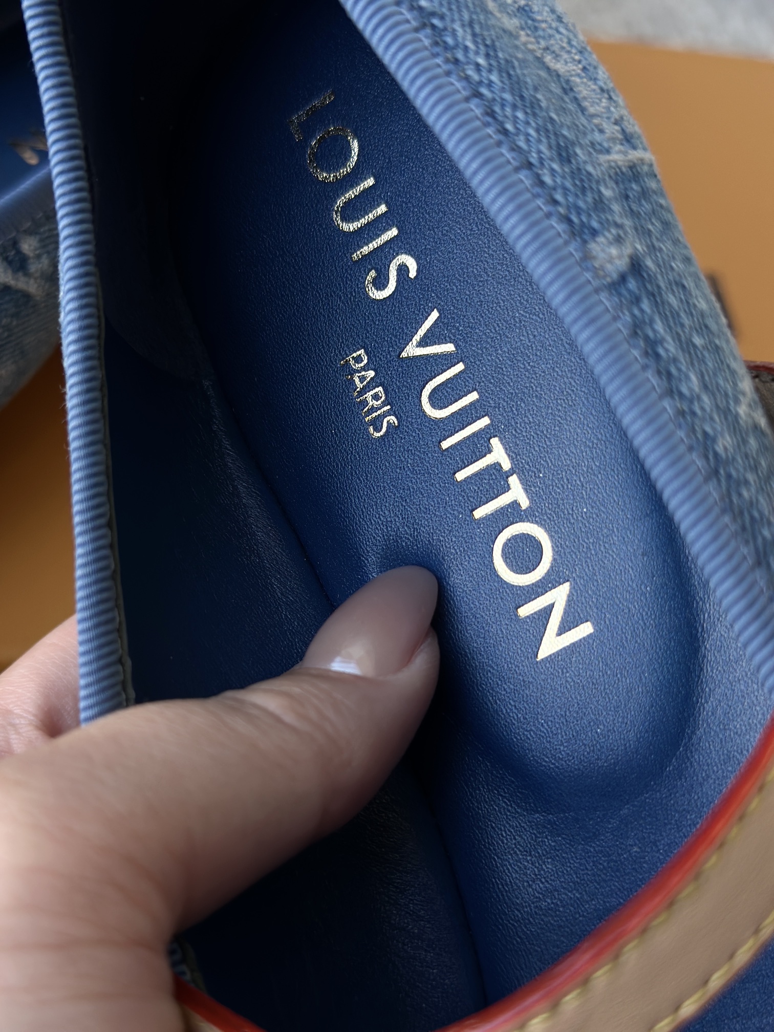 原𠂆单宁牛仔老花布鞋面 LV经典老花布非常有辨识度!隔着老远都能感受到那种低调又贵气的调调~ 配上单宁布简直是神来之笔