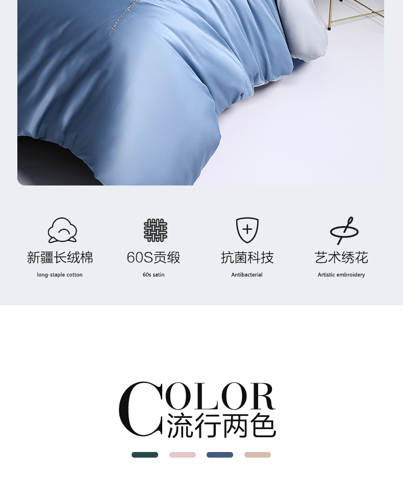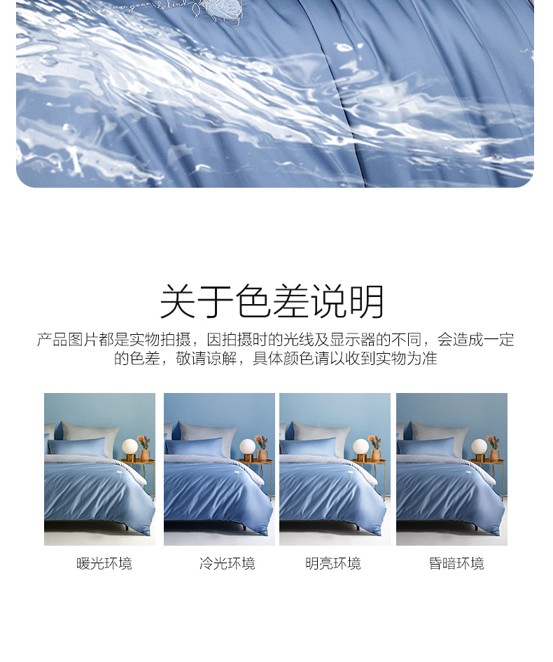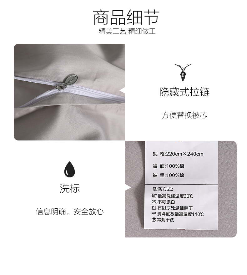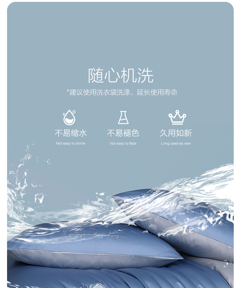 3.需与其他衣物分开洗涤,避免串色,并将被套翻过来清洗