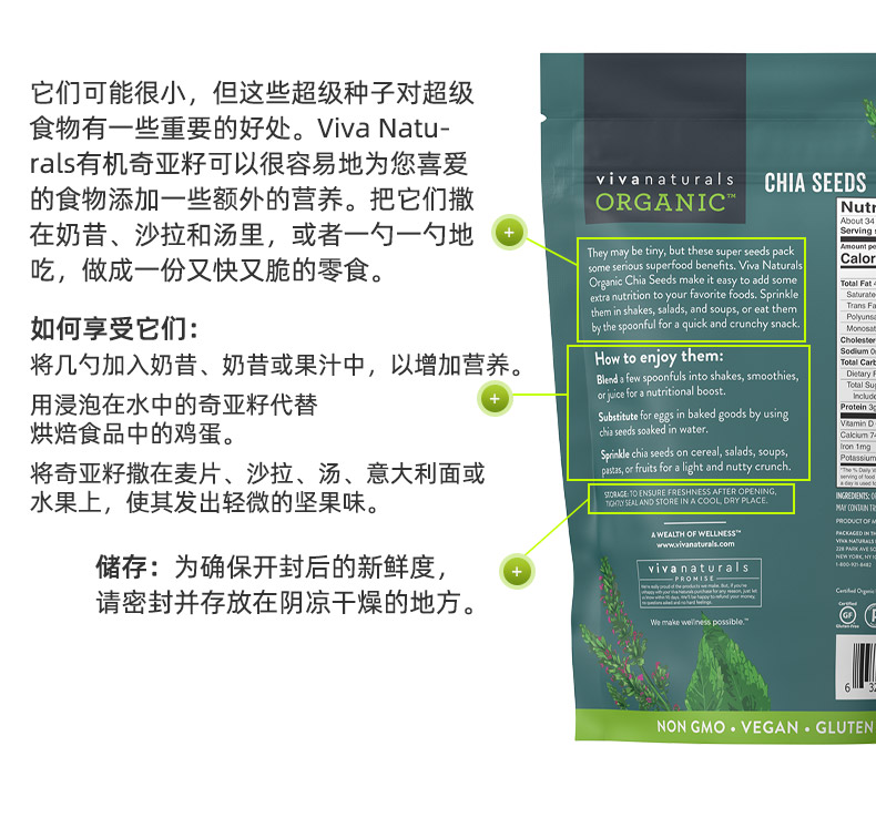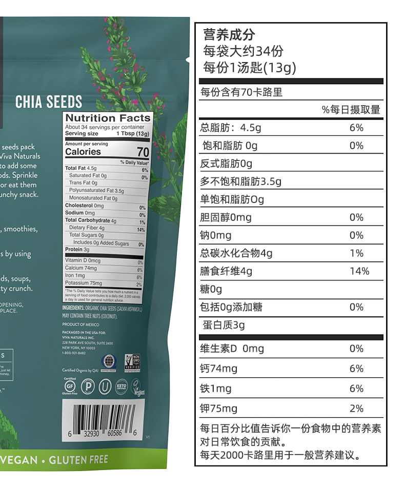 Viva Naturals 进口天然有机墨西哥奇亚籽代餐饱腹454g2袋大容量