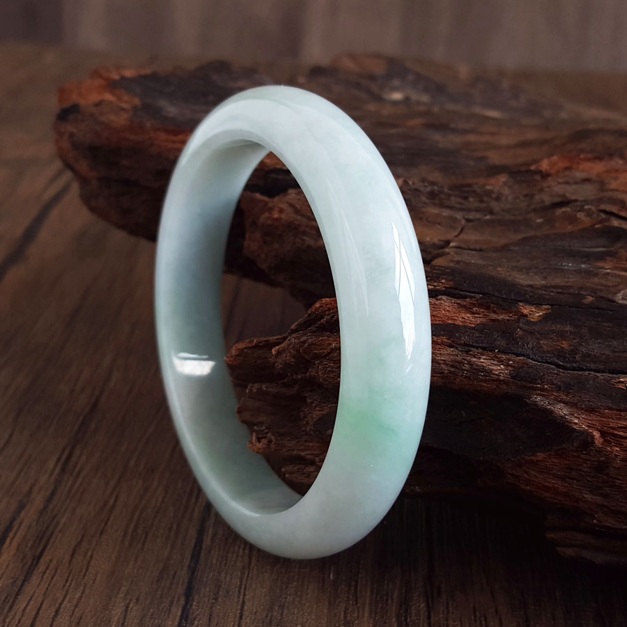 【天然正品】A货翡翠天然细腻无纹裂正桩青白含绿糯种59号翡翠手镯女士现售价:1680!310325AH46