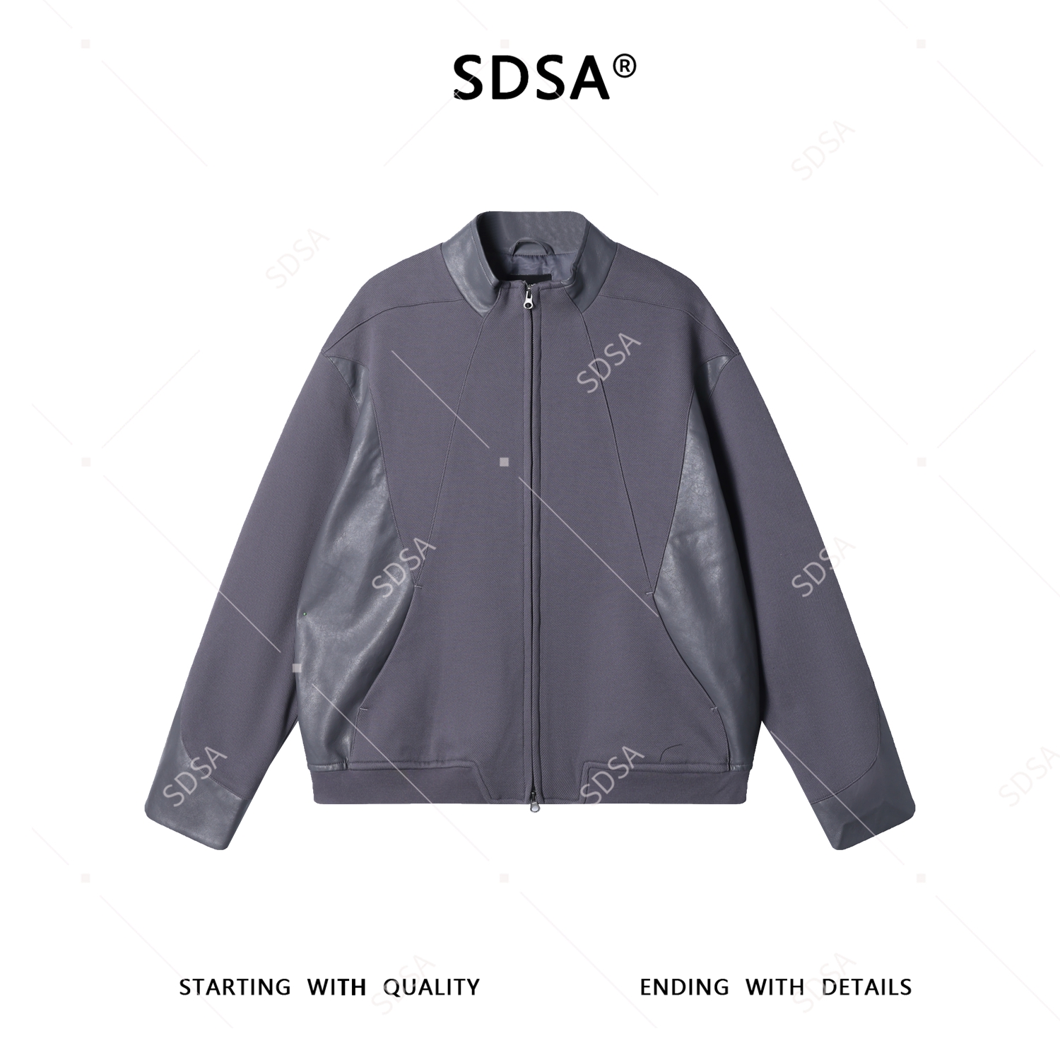 24618SDSA男士秋冬新款痞帅男装韩版时尚针织拼皮拉链立领夹克外套百搭