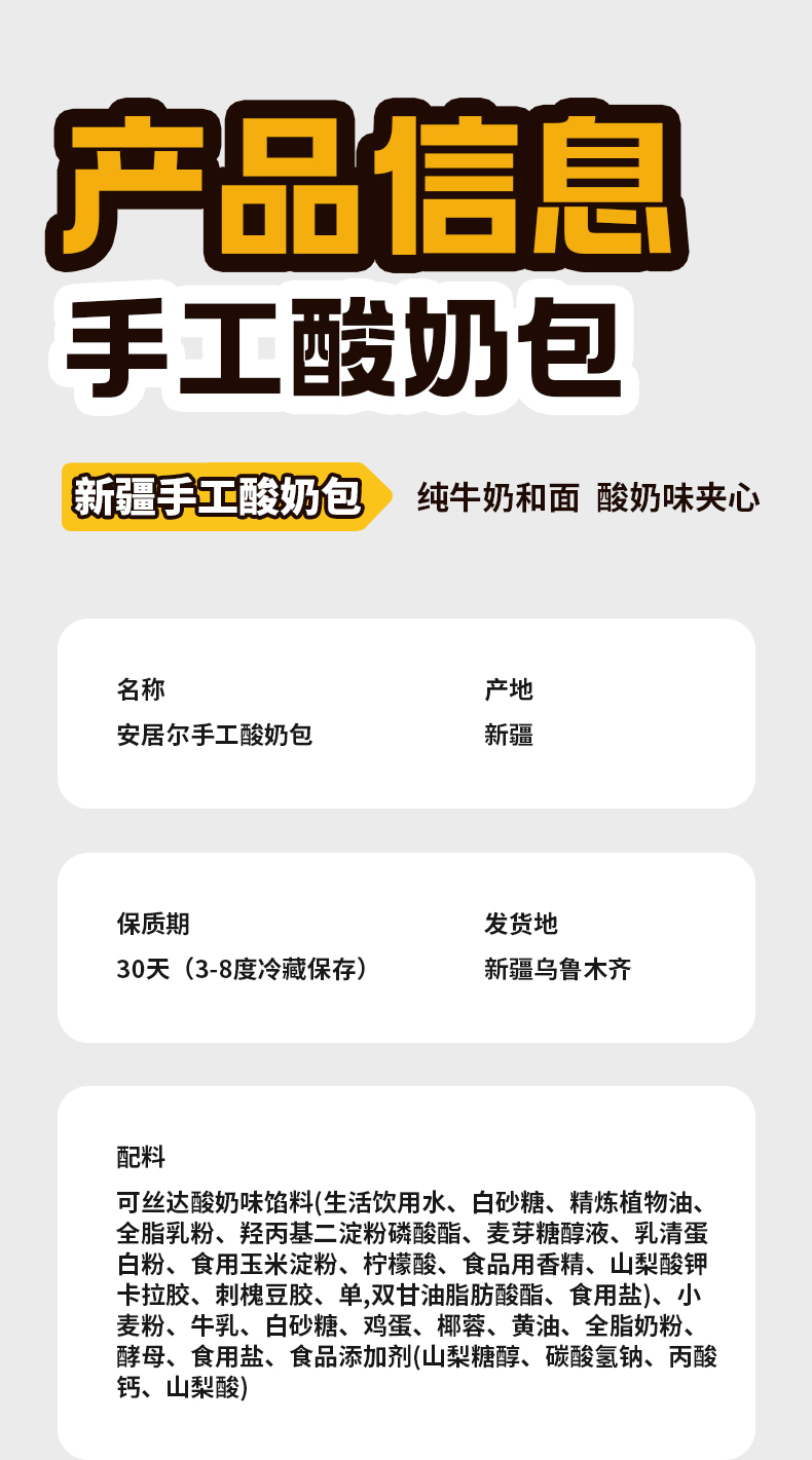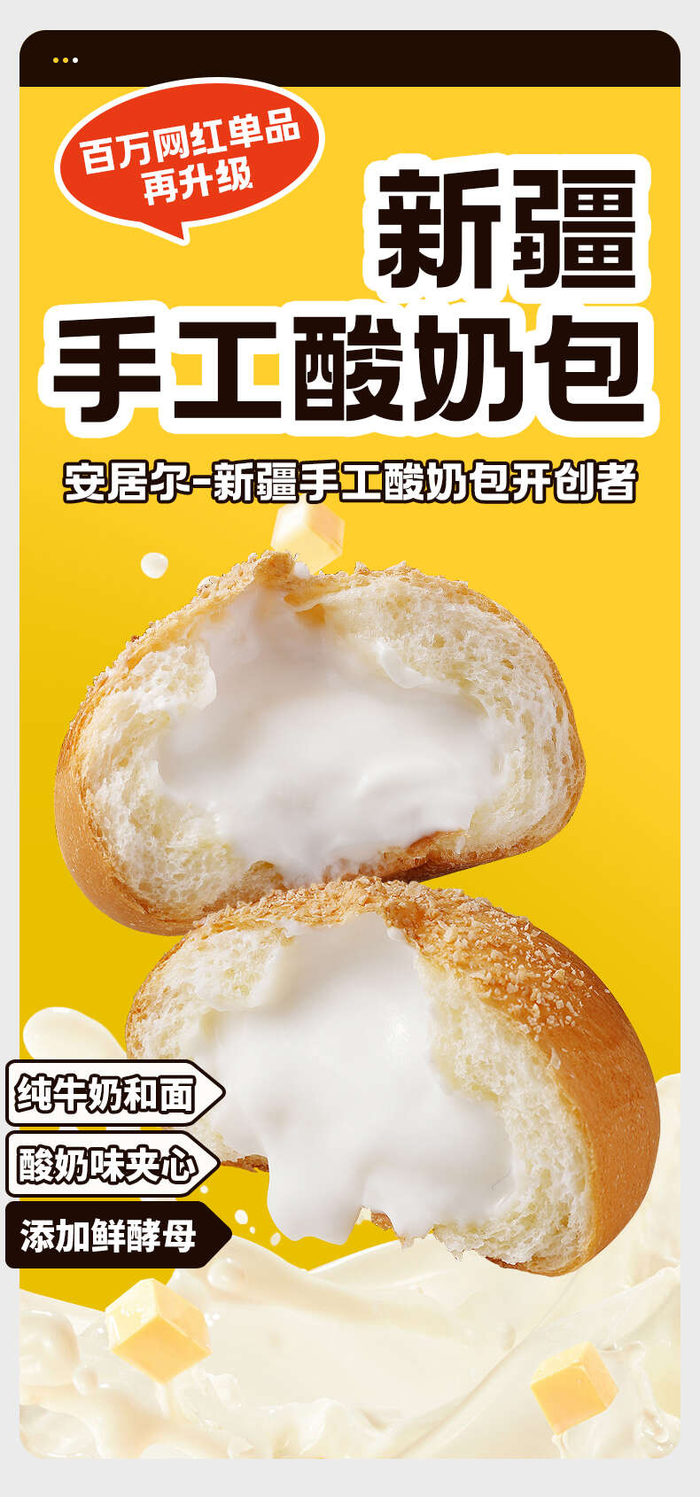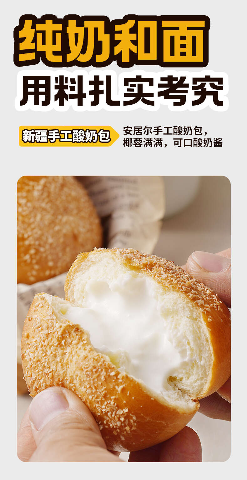 安居尔新疆爆浆手工酸奶包 整箱袋装传统手工制作 美食网红夹心早餐面包 AWJM