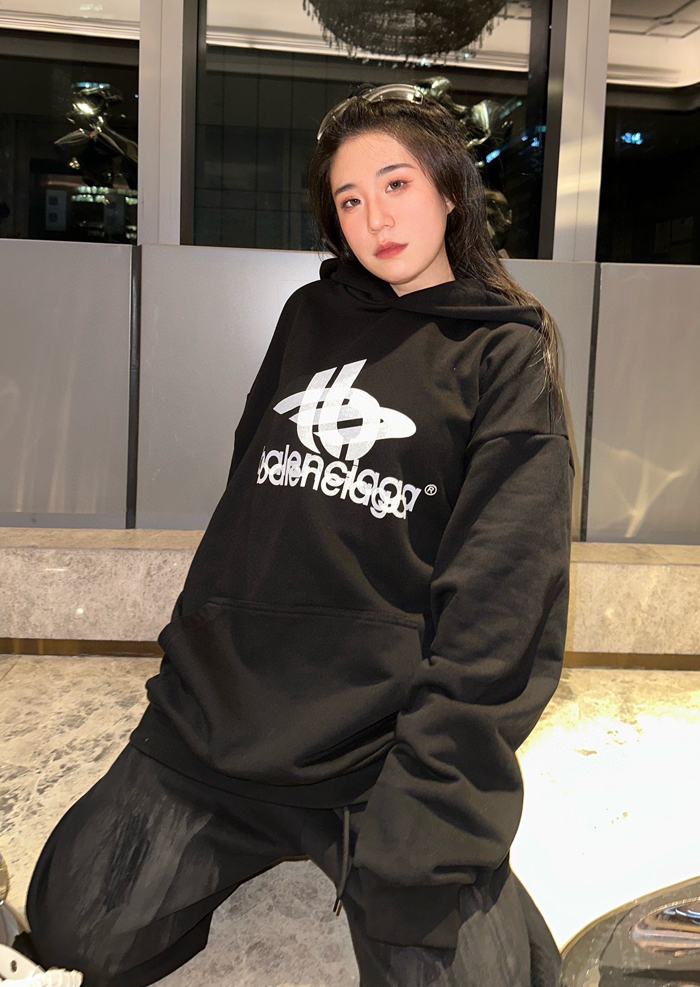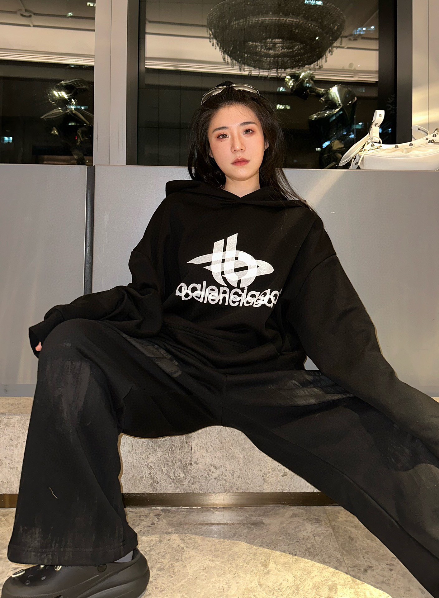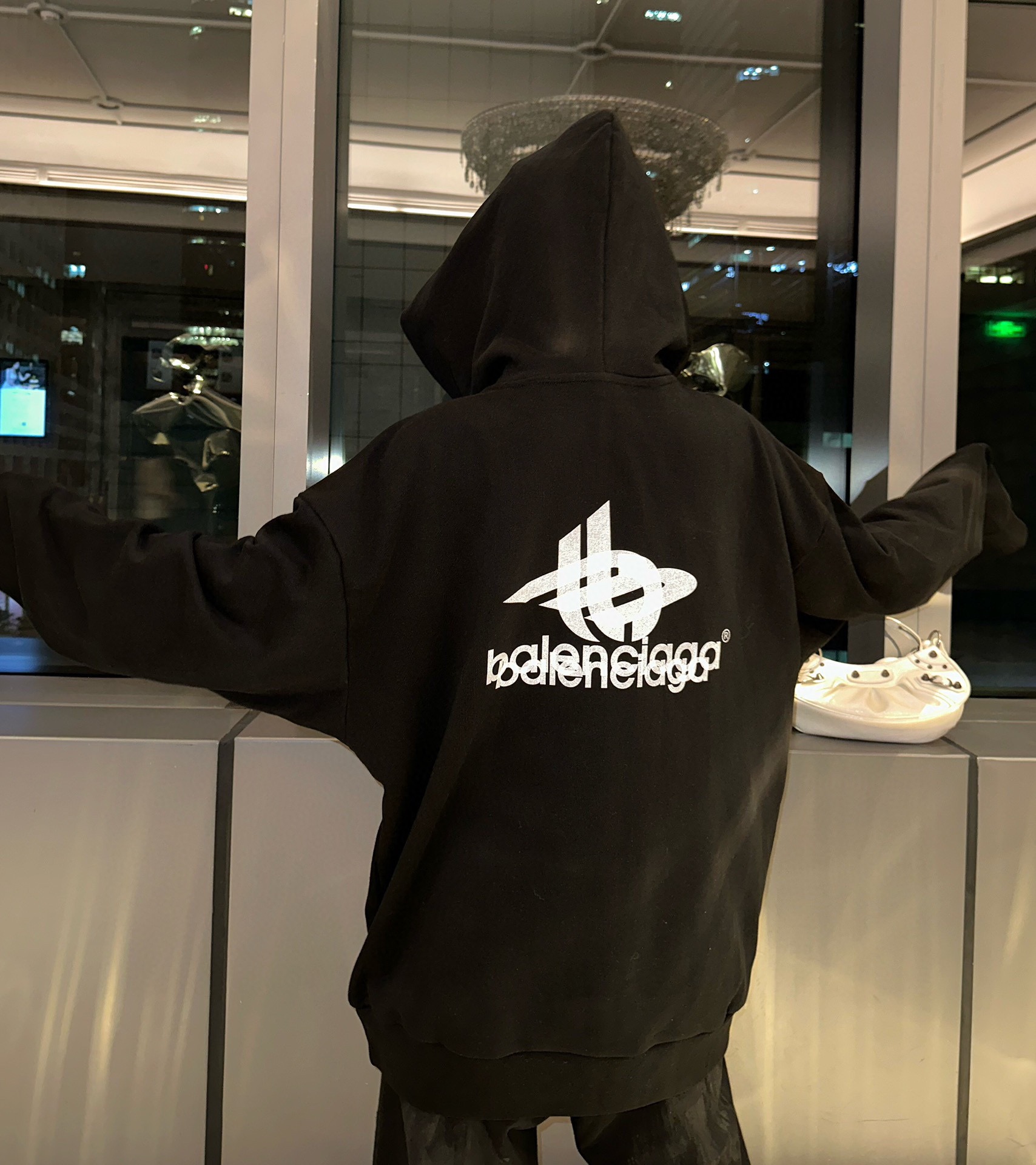 -BALENCI*GA 巴黎叠影字母印花连帽卫衣 前后幅字母胶浆丝网印花工艺 独家对版定织定染450g面料 独家高品质 欢迎对比 男女同款