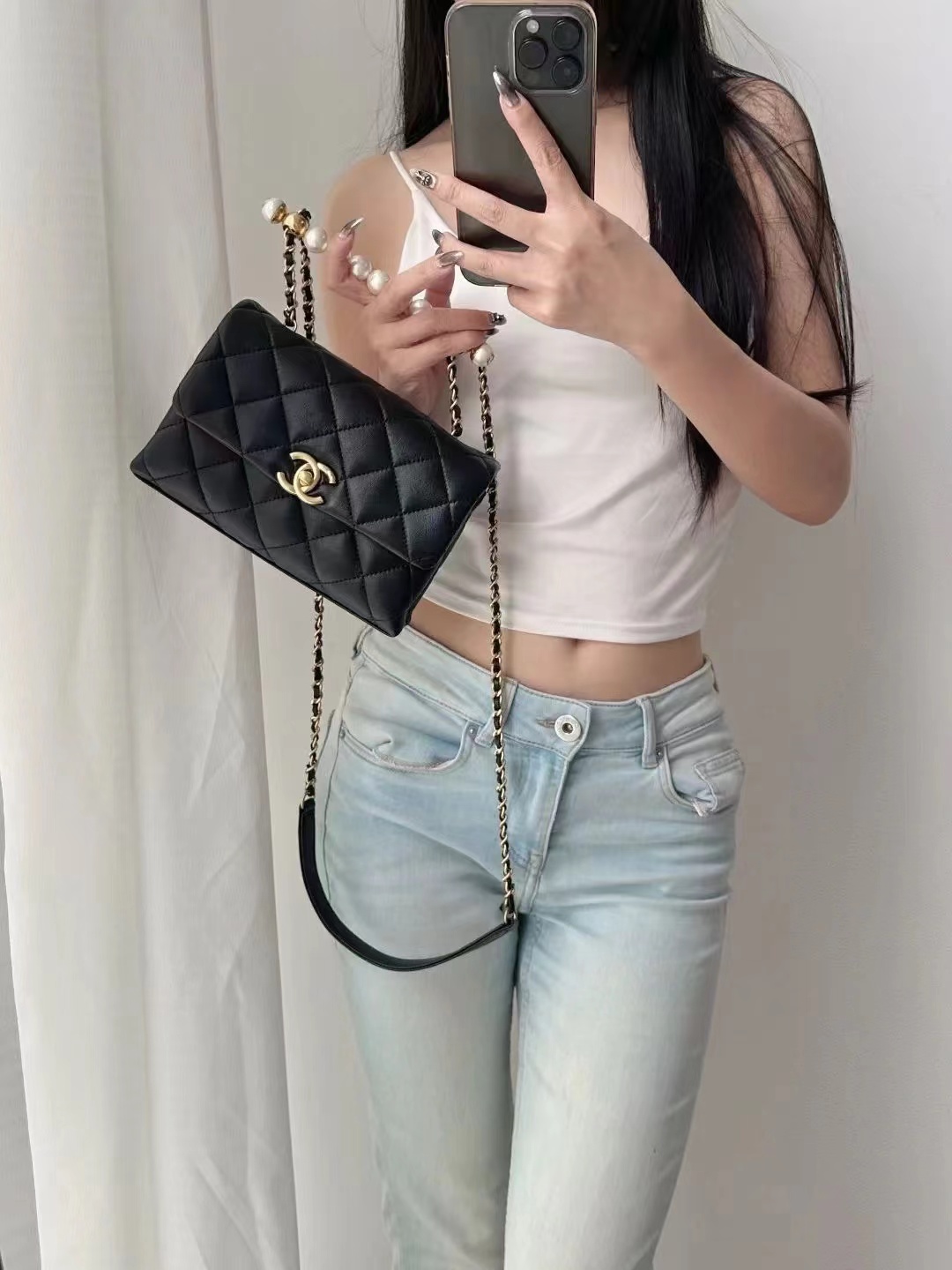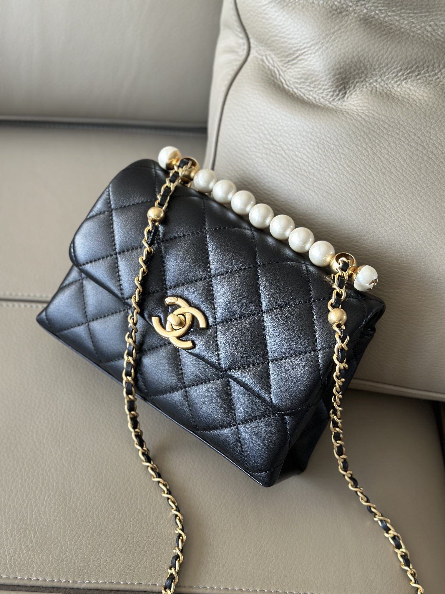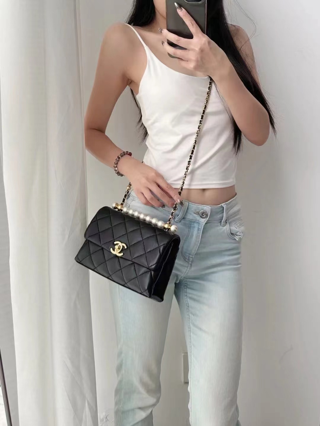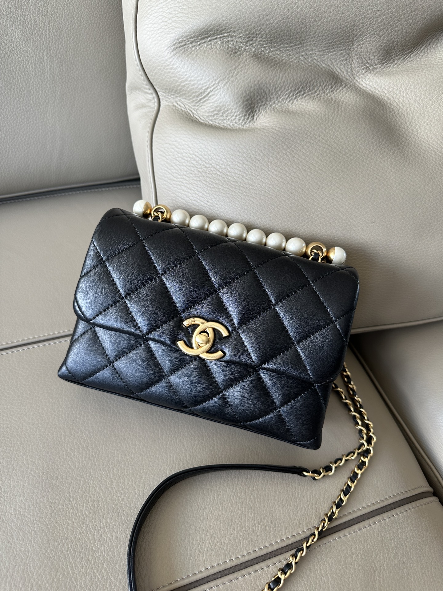 Top原厂皮 24A 珍珠cf口盖包原厂羊皮