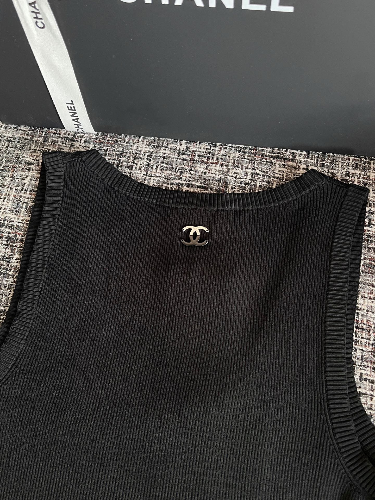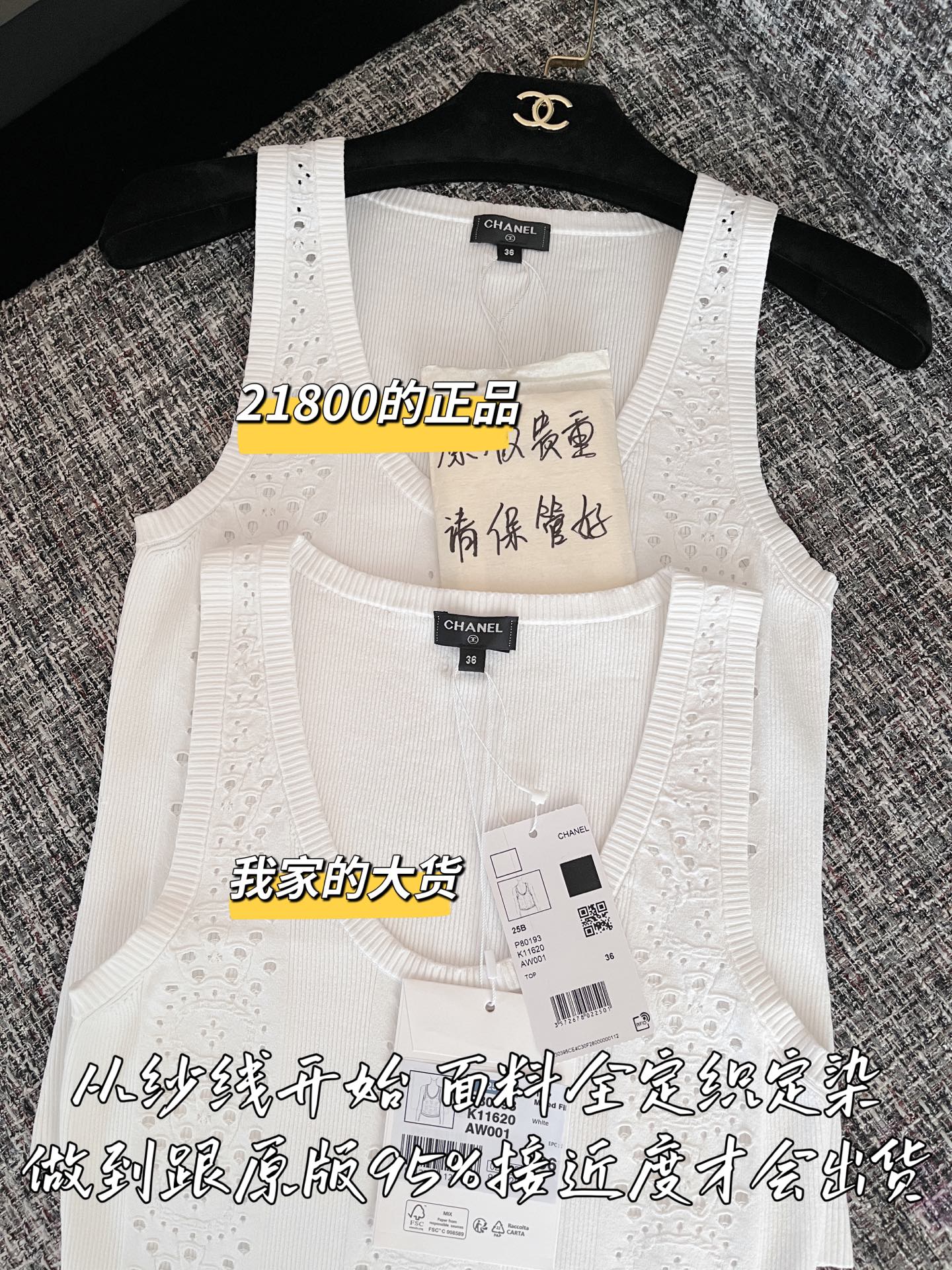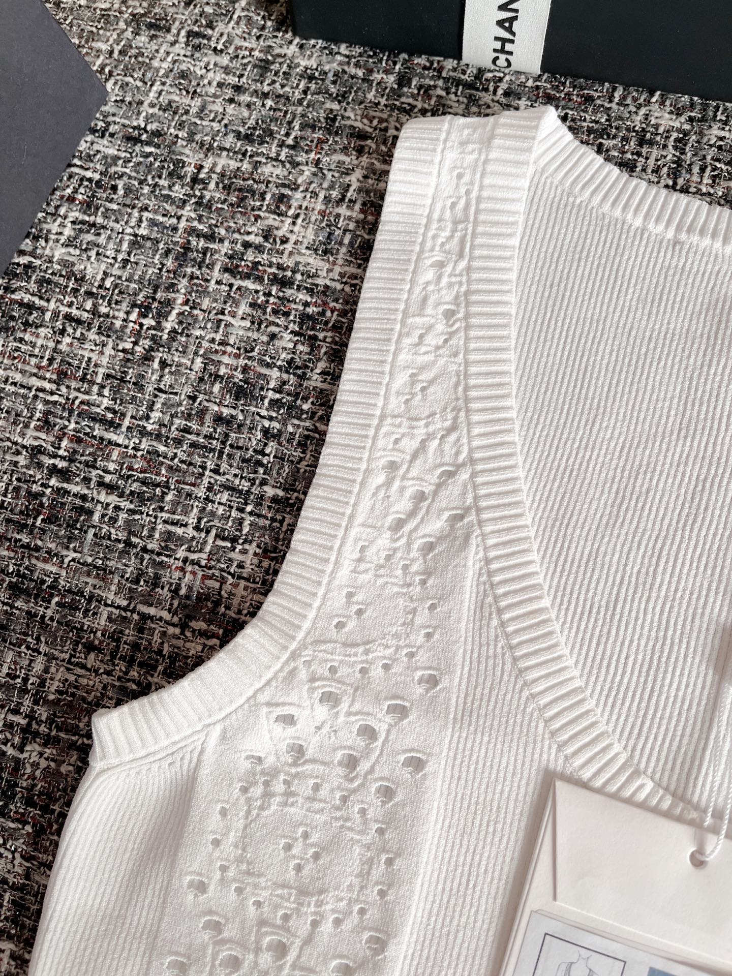 CHANEL 香奈儿25春夏新款背心🐮21800购买Zp拆解打造,订织订染意大利进口面料🐮真正用到100%高捻棉纱做到对版出货💪工艺放大看细节除还原度接近98以上 做工也无敌了🔥真正做到1:1还原 直接闭着眼购买👀