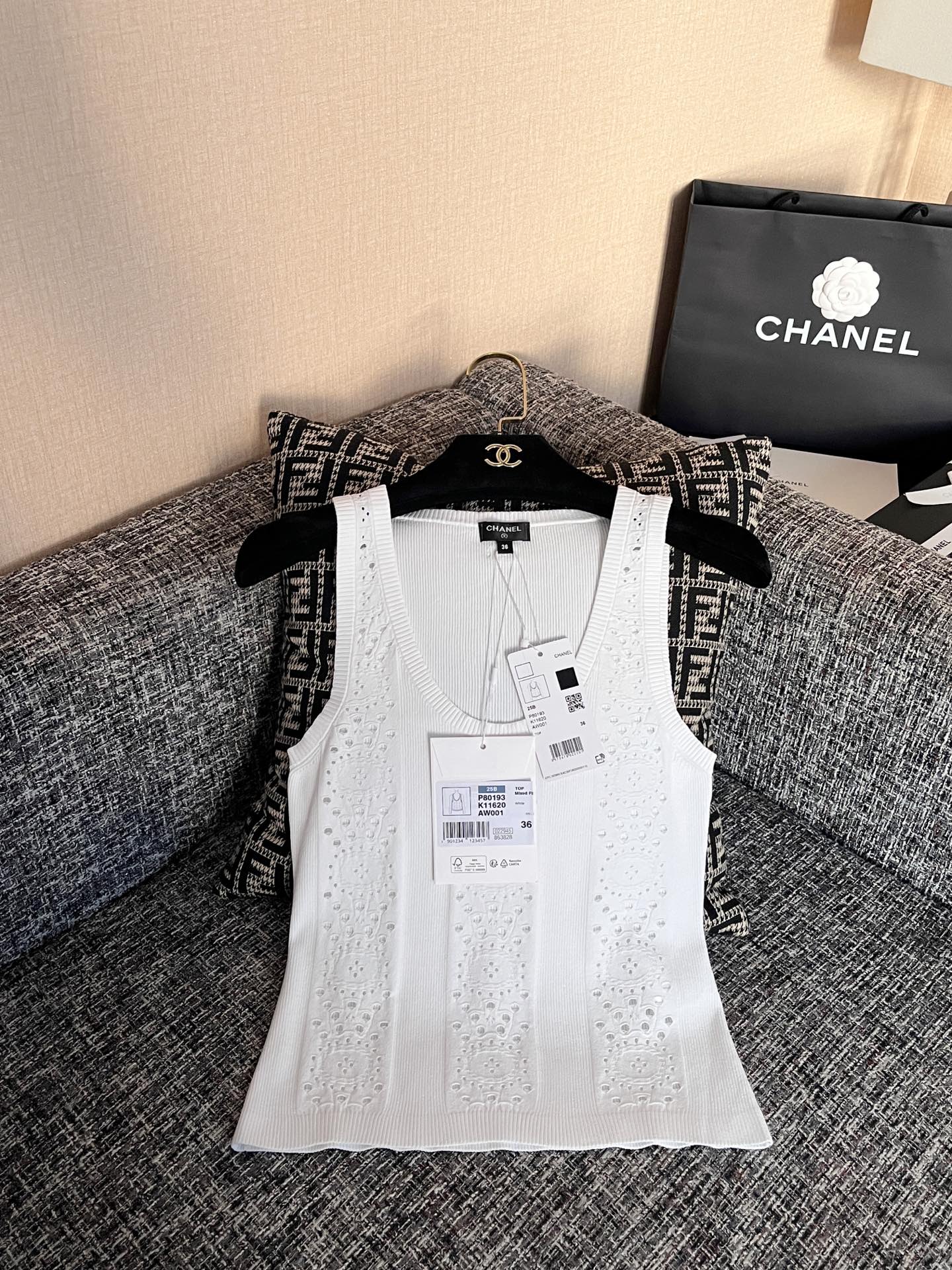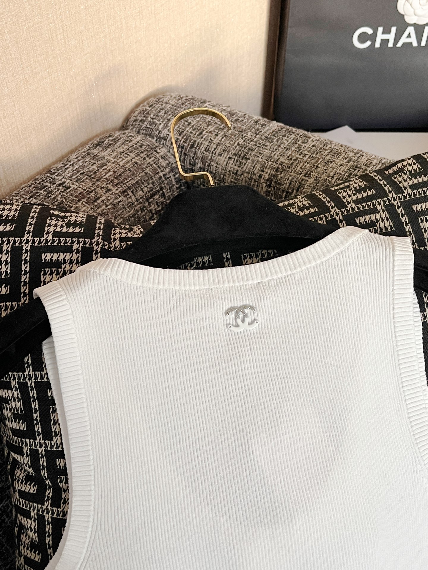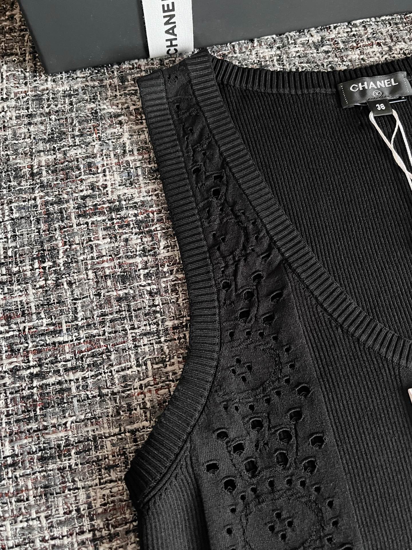 CHANEL 香奈儿25春夏新款背心🐮21800购买Zp拆解打造,订织订染意大利进口面料🐮真正用到100%高捻棉纱做到对版出货💪工艺放大看细节除还原度接近98以上 做工也无敌了🔥真正做到1:1还原 直接闭着眼购买👀