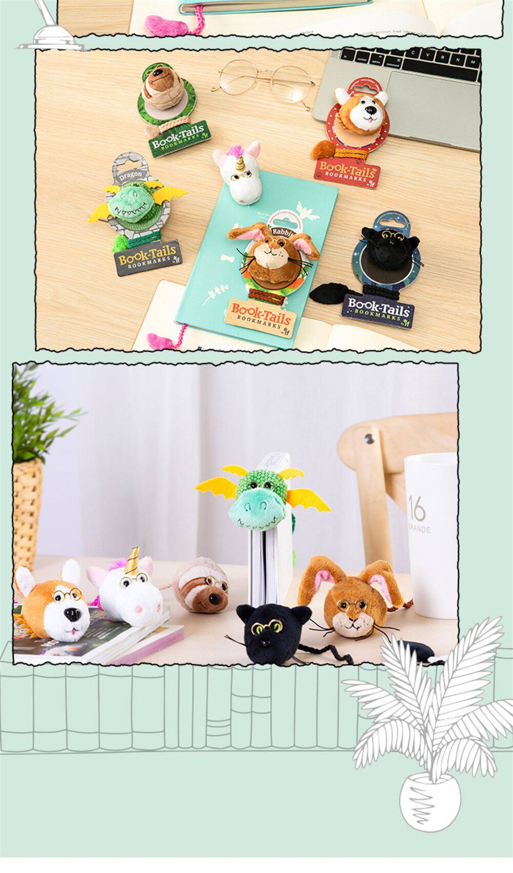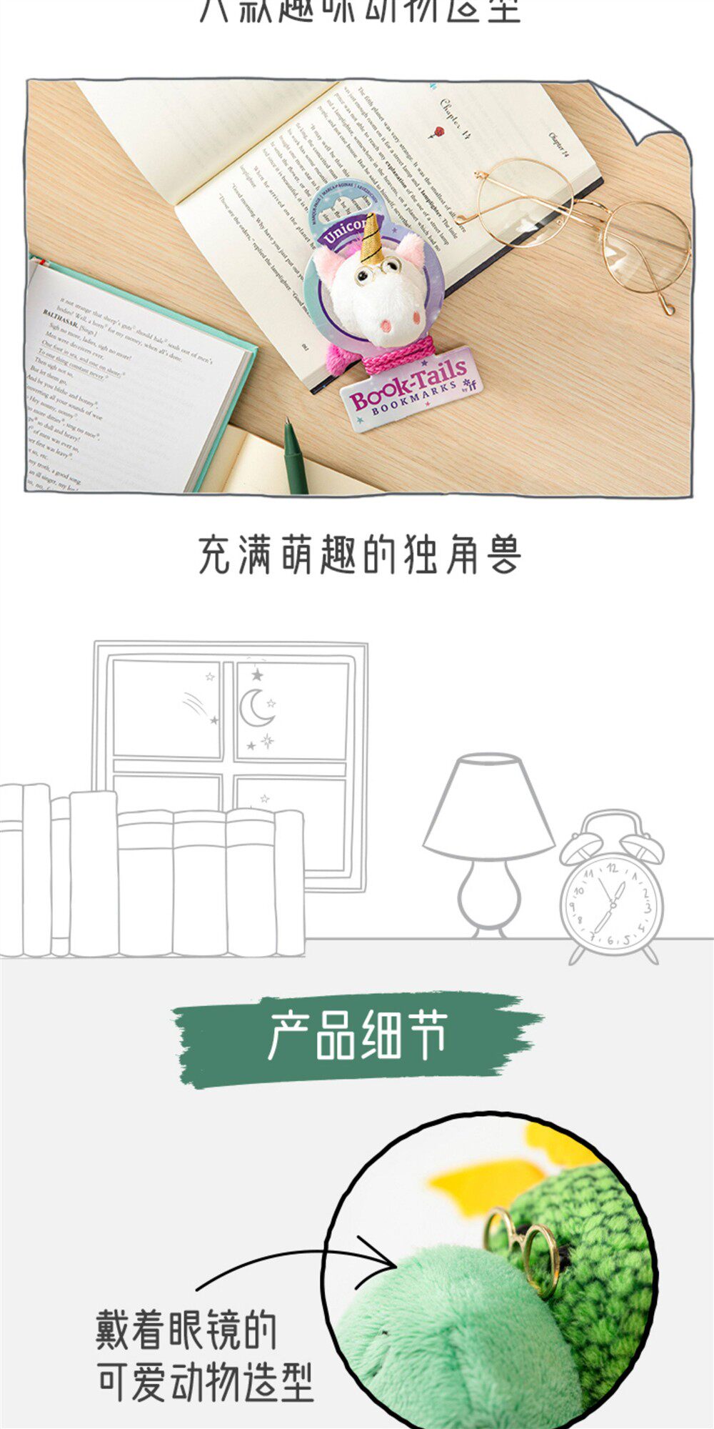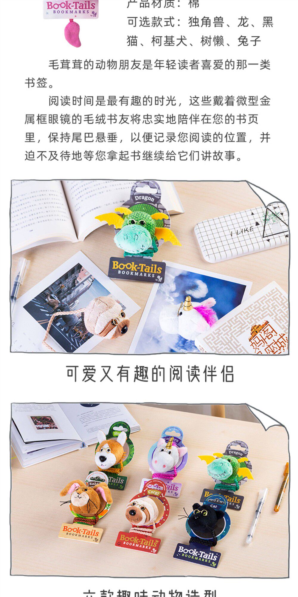 阿果拉-动物书签英国IF文创毛绒龙年独角兽学生趣味送礼物