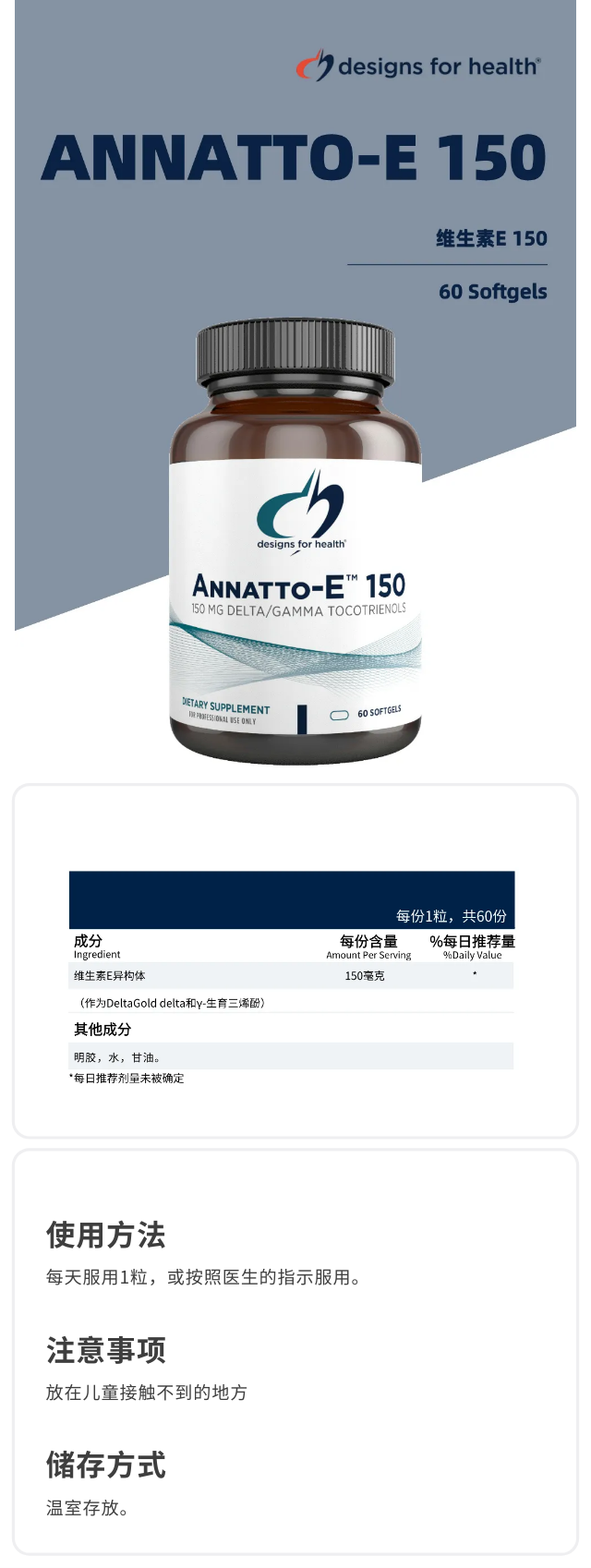 海淘 健康设计 维生素E150 ANNATTO-E 150 60粒/瓶 08/26